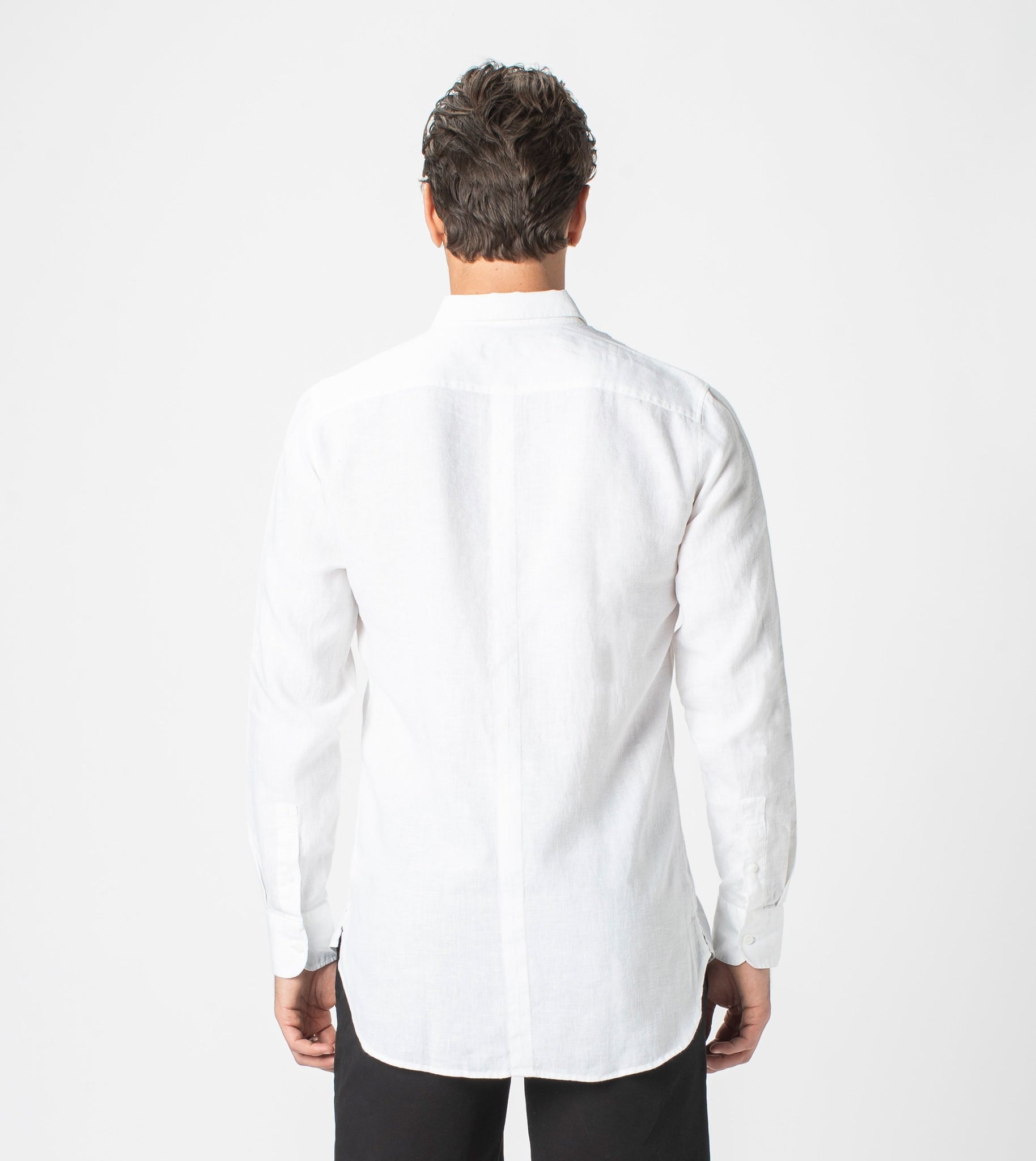 The ZANEROBE 7 Foot LS Linen Shirt in White - classically tailored with breathable linen fabrication. We wear with our classic Snapshot Chinos.
