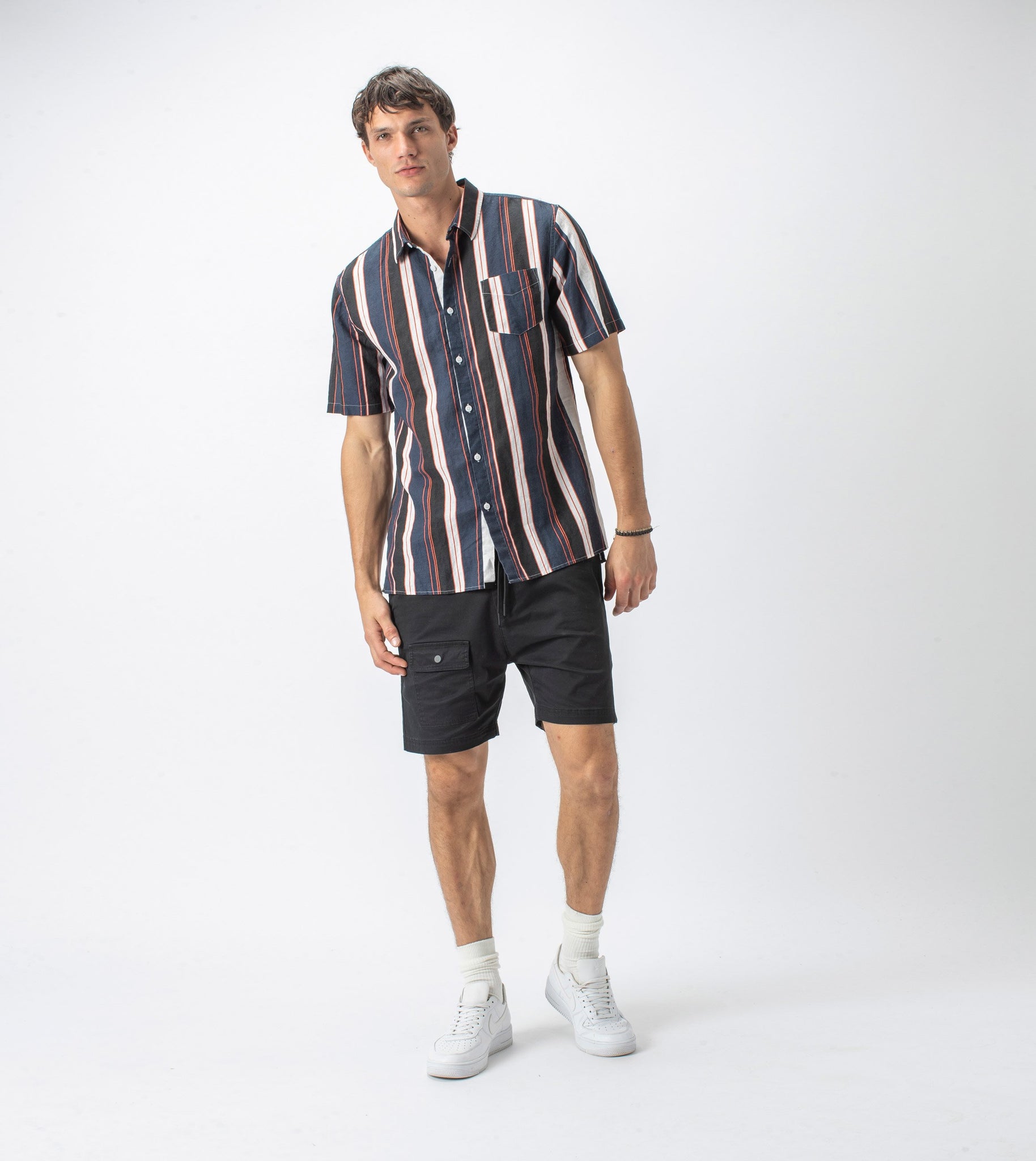The ZANEROBE 90'S SS Shirt in Ink/Milk - lightweight relaxed shirt, featured here with the latest ZANEROBE short silhouette Snapshot Cargo.