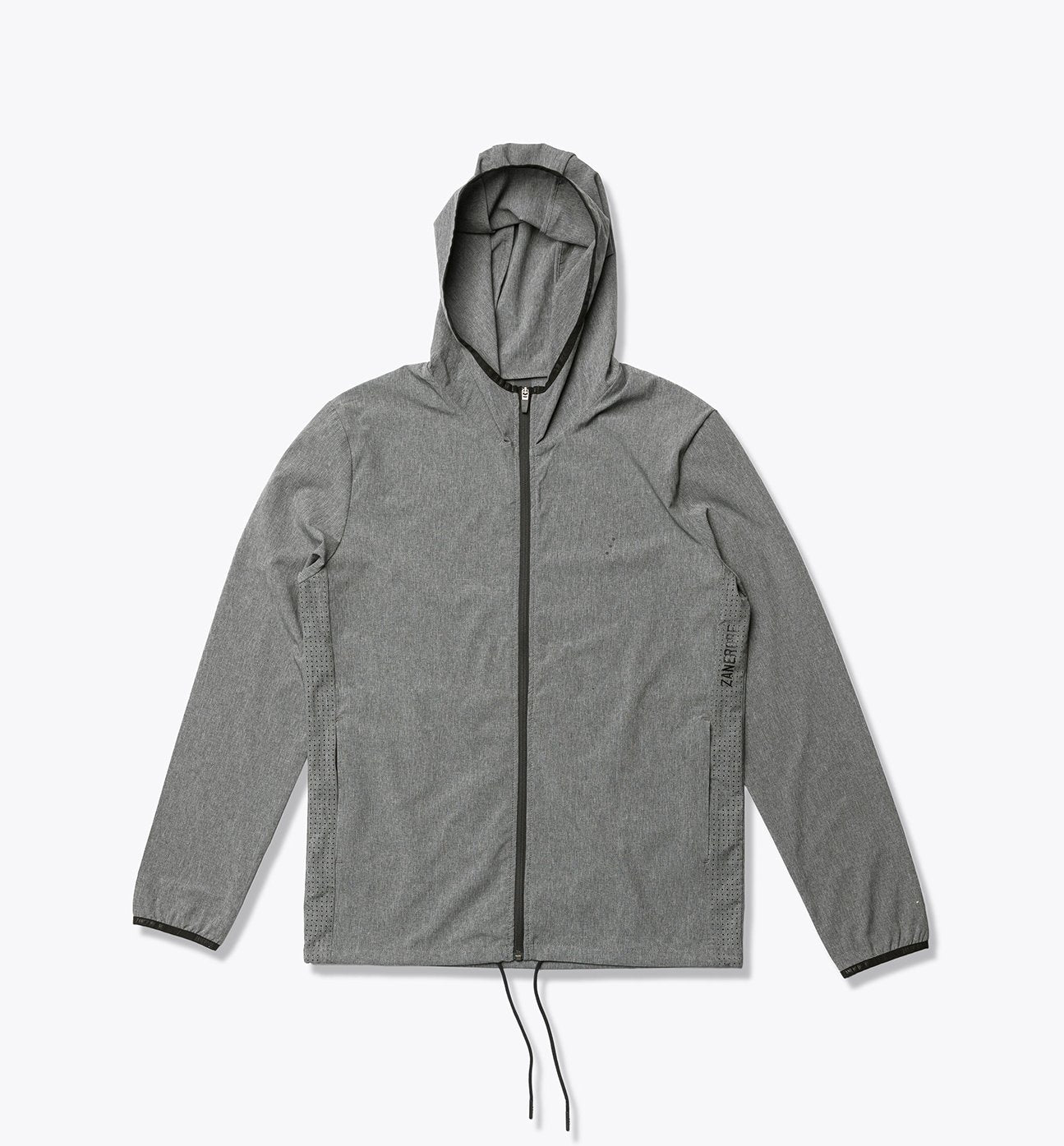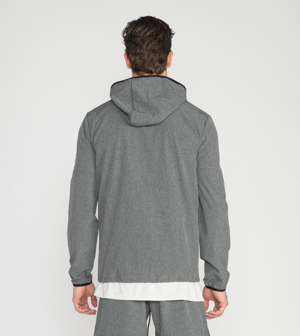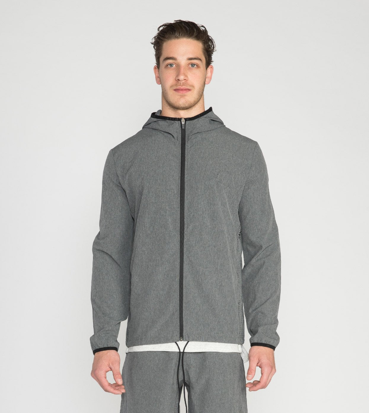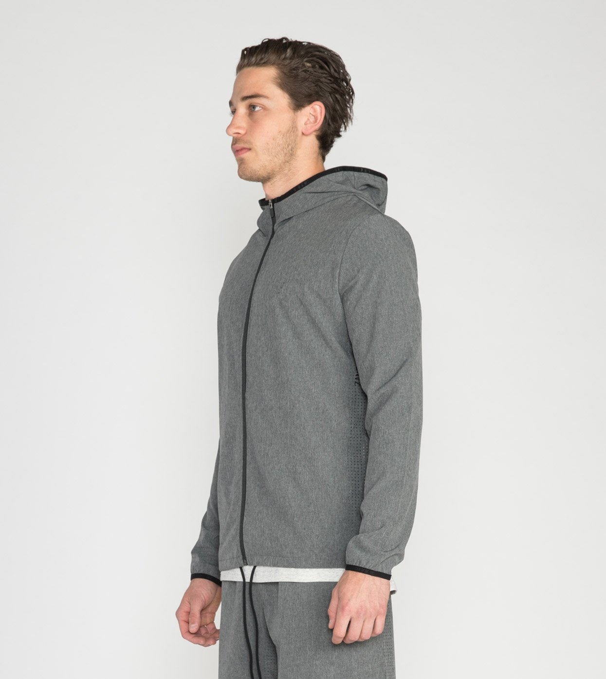 All-terrain, all-purpose lightweight two-way stretch hooded training jacket with stretch-mesh panels for unrestrictive movement and performance. Heat-sealed zips, waist cinching toggles, reinforced cuffs, heat applied REC ‘three-dot’ logo print on chest. Device-friendly. Perfect for warm-up, training, competition and travel.