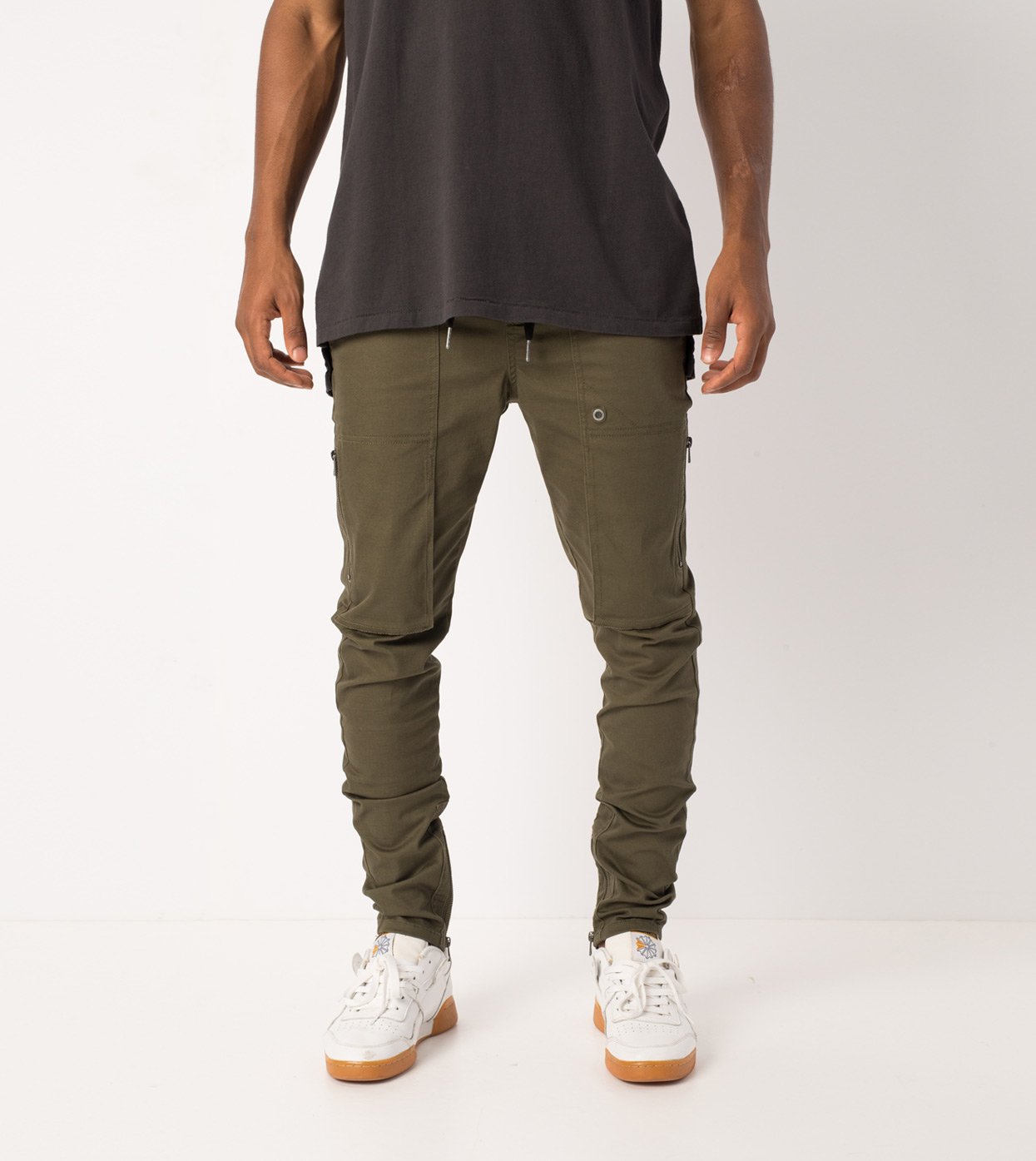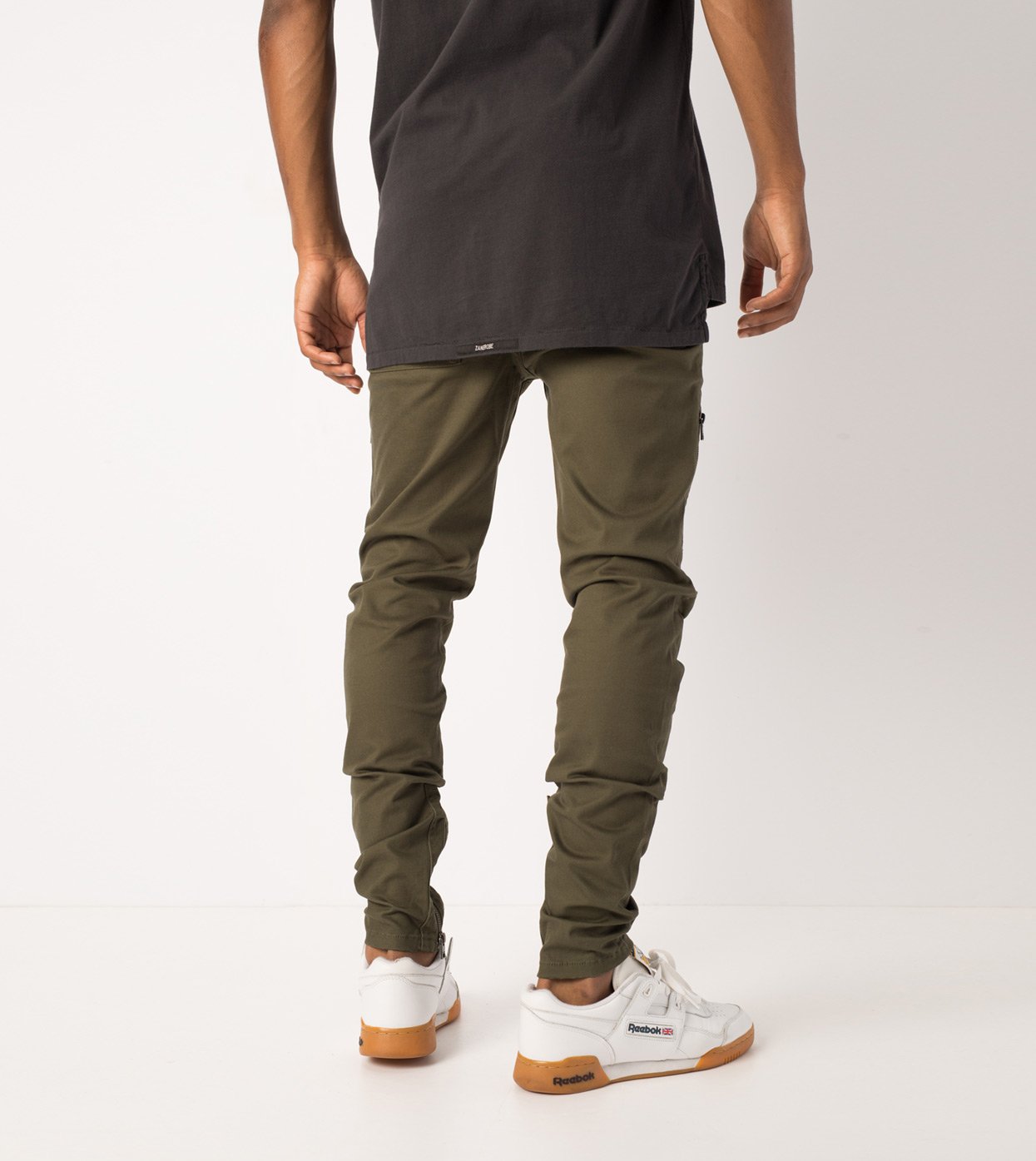 The ZANEROBE Blockshot Chino in Military - Tapered Modern Cargo pant, slim fit, zipped cuffs and military detailing. Focussing on traditional utility, these engineered pants wont fail you. We wear ours with a clean basic ZANEROBE T-Shirt.