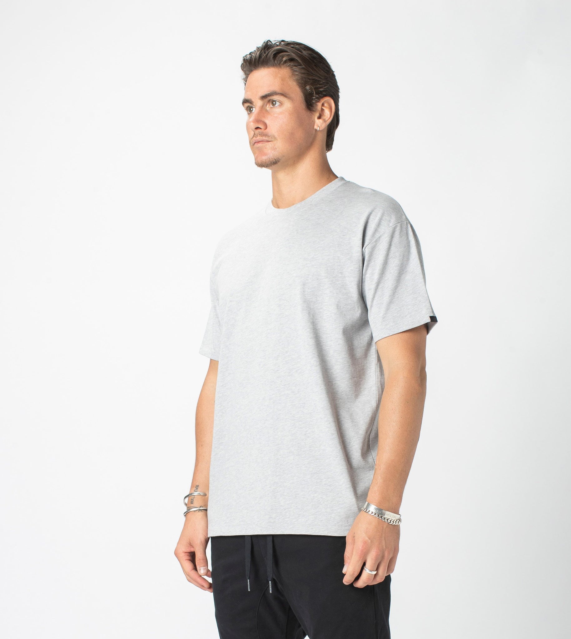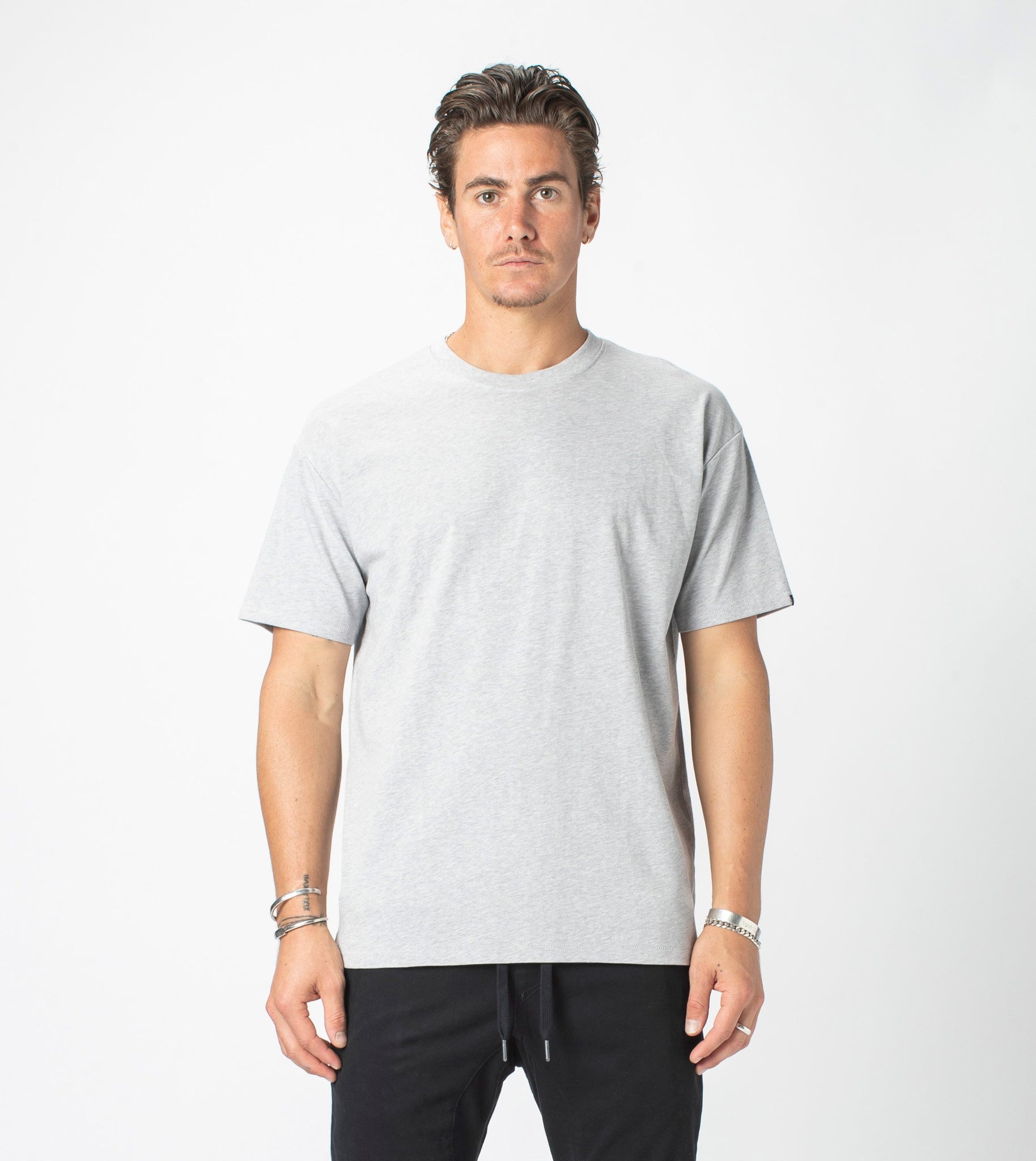 The ZANEROBE Box Tee in Silver Marle- classic relaxed tee silhouette. We wear ours with the signature Sureshot Jogger or some skinny ZANEROBE jeans.