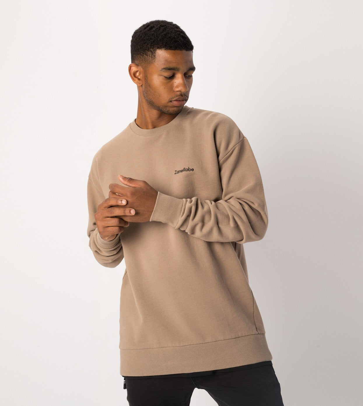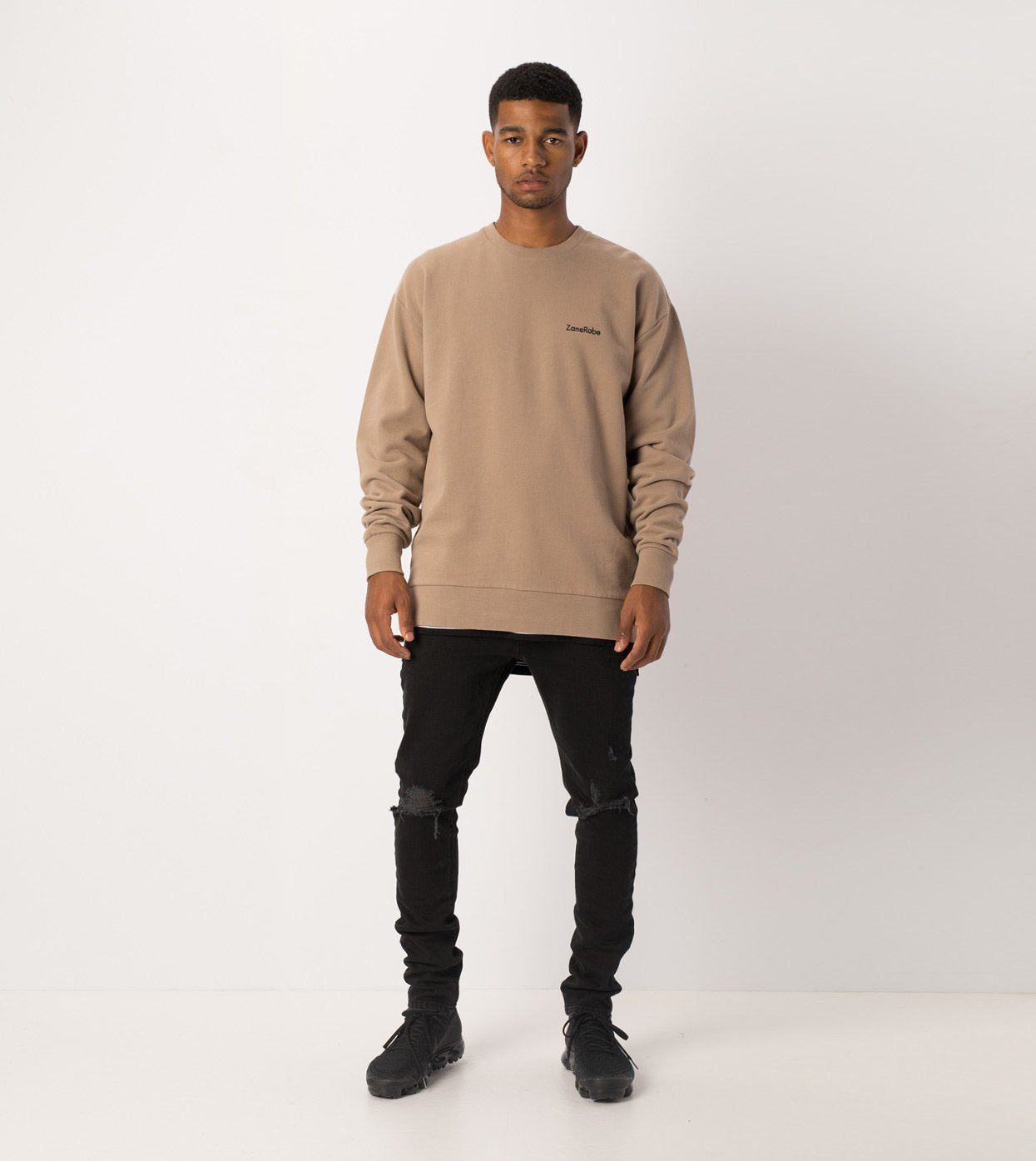 The ZANEROBE Case Rugger Crew Sweat in Timber - Signature fleece fit constructed in 100% cotton french terry, drop shoulder, slightly oversized fit, embroidered logo. Wear with our distressed Joe Blow Jeans.