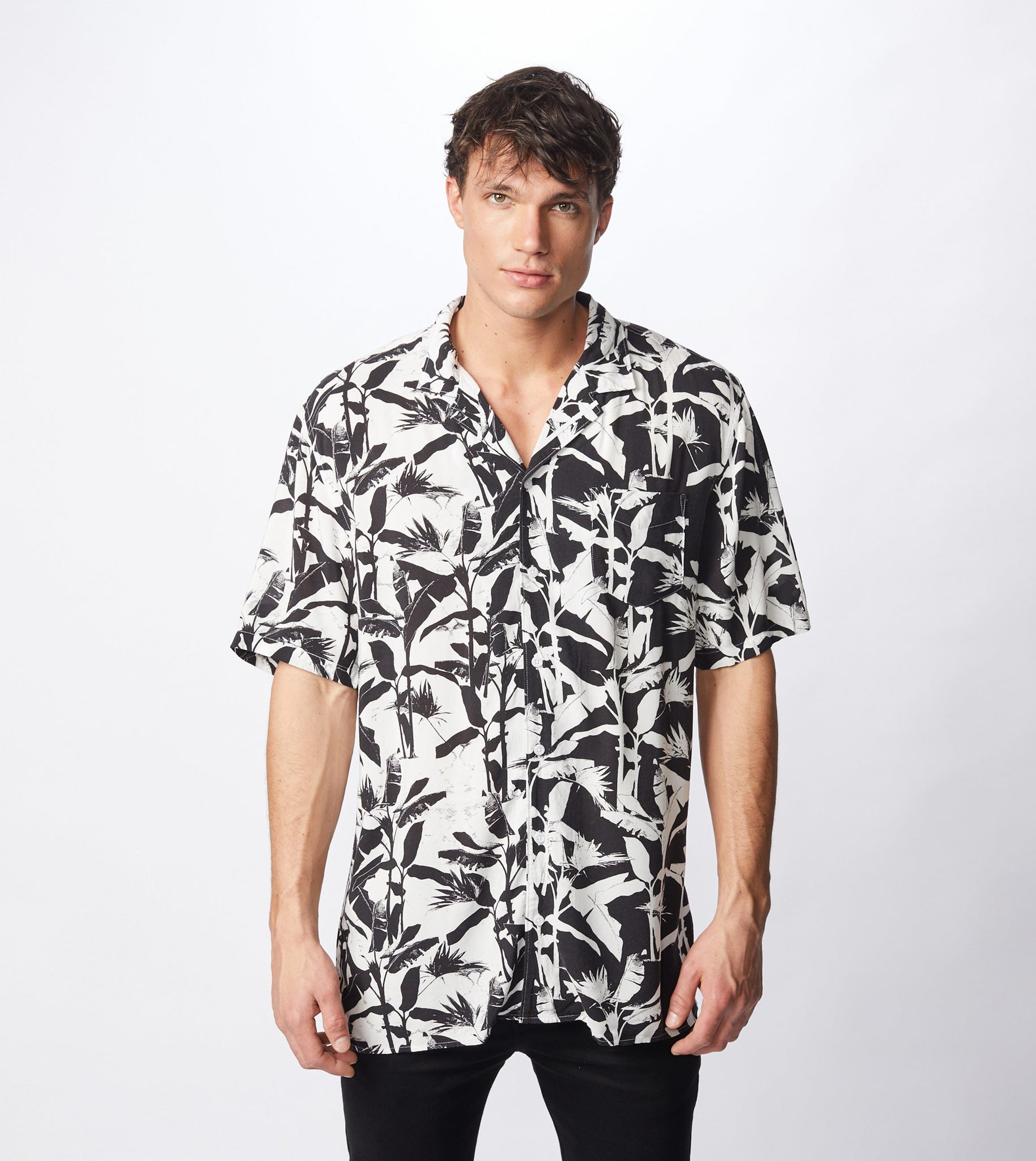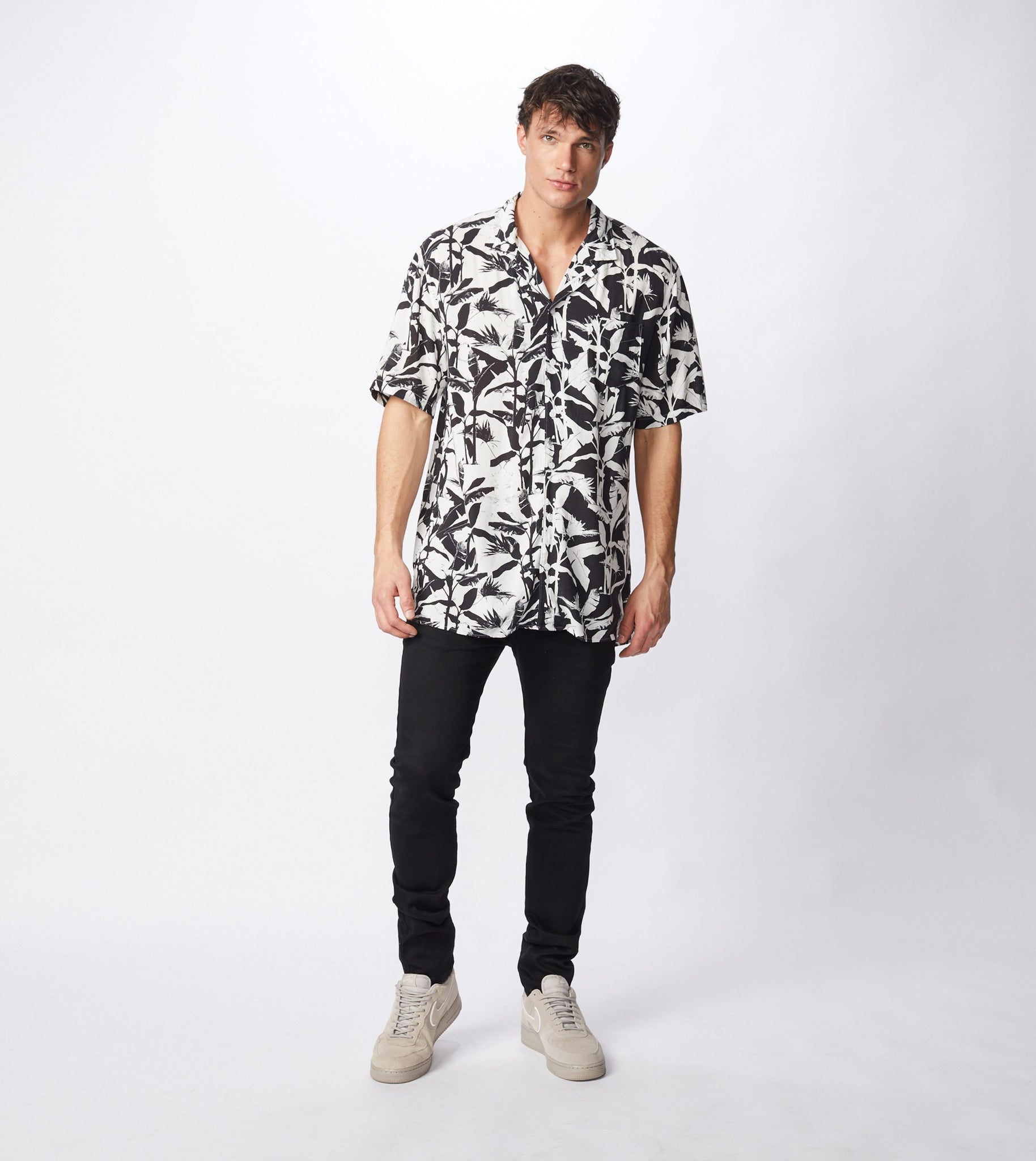 The ZANEROBE Diced SS Shirt in Black/White - lightweight relaxed shirt, featured here with our classic Joe Blow Jeans.