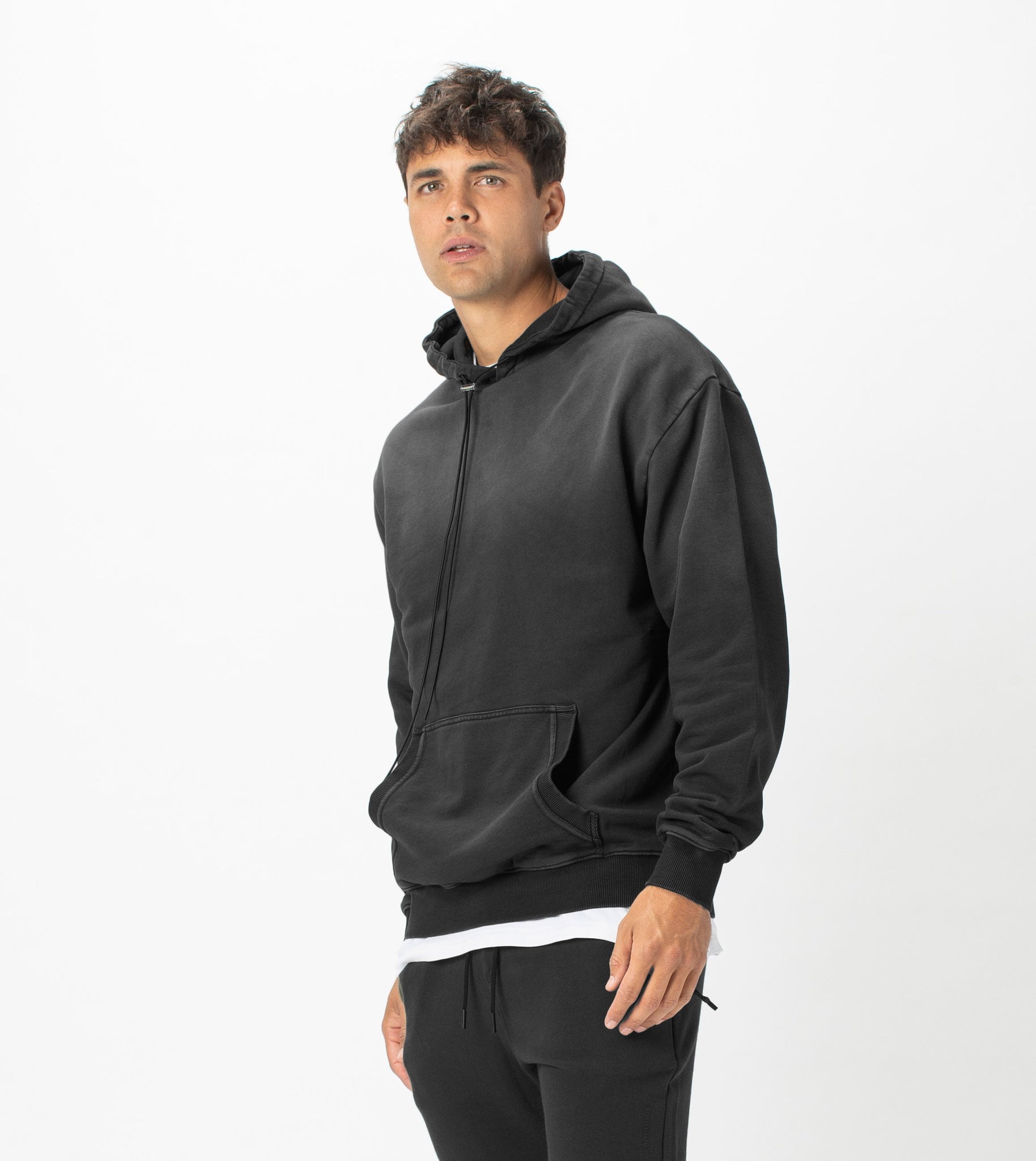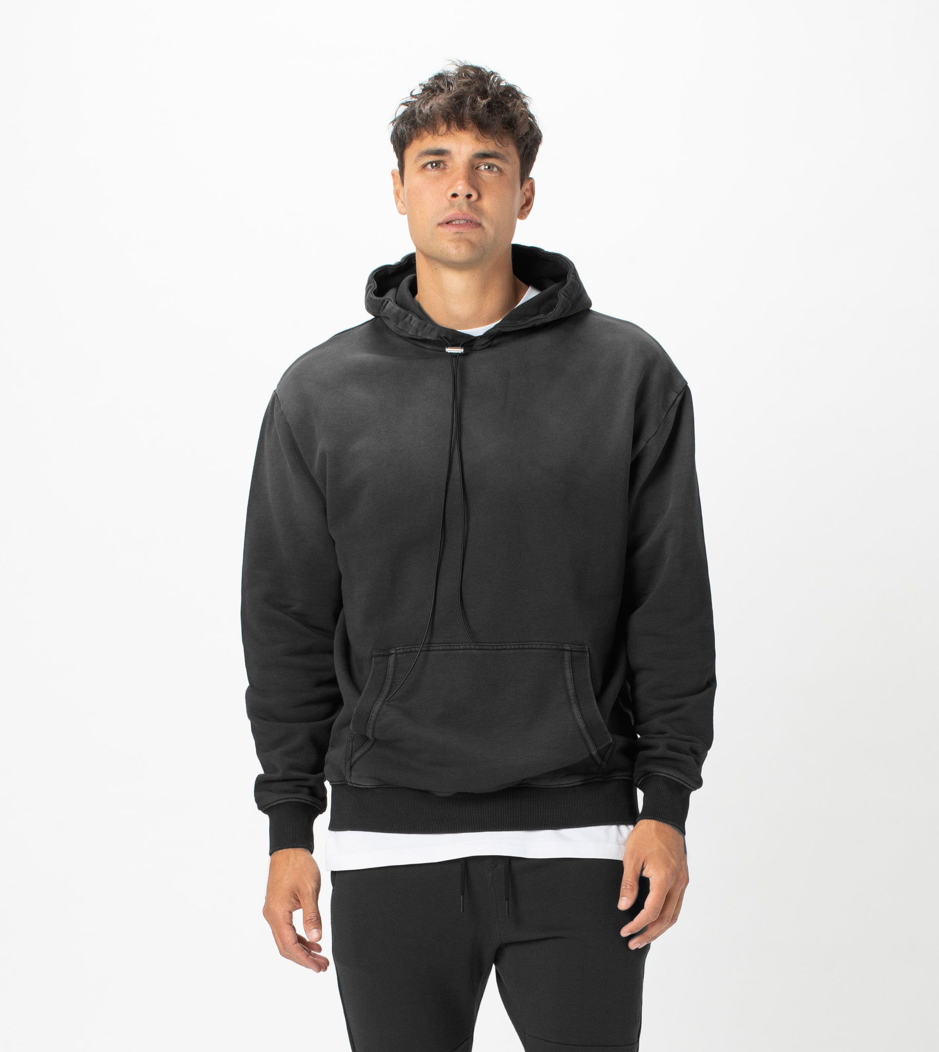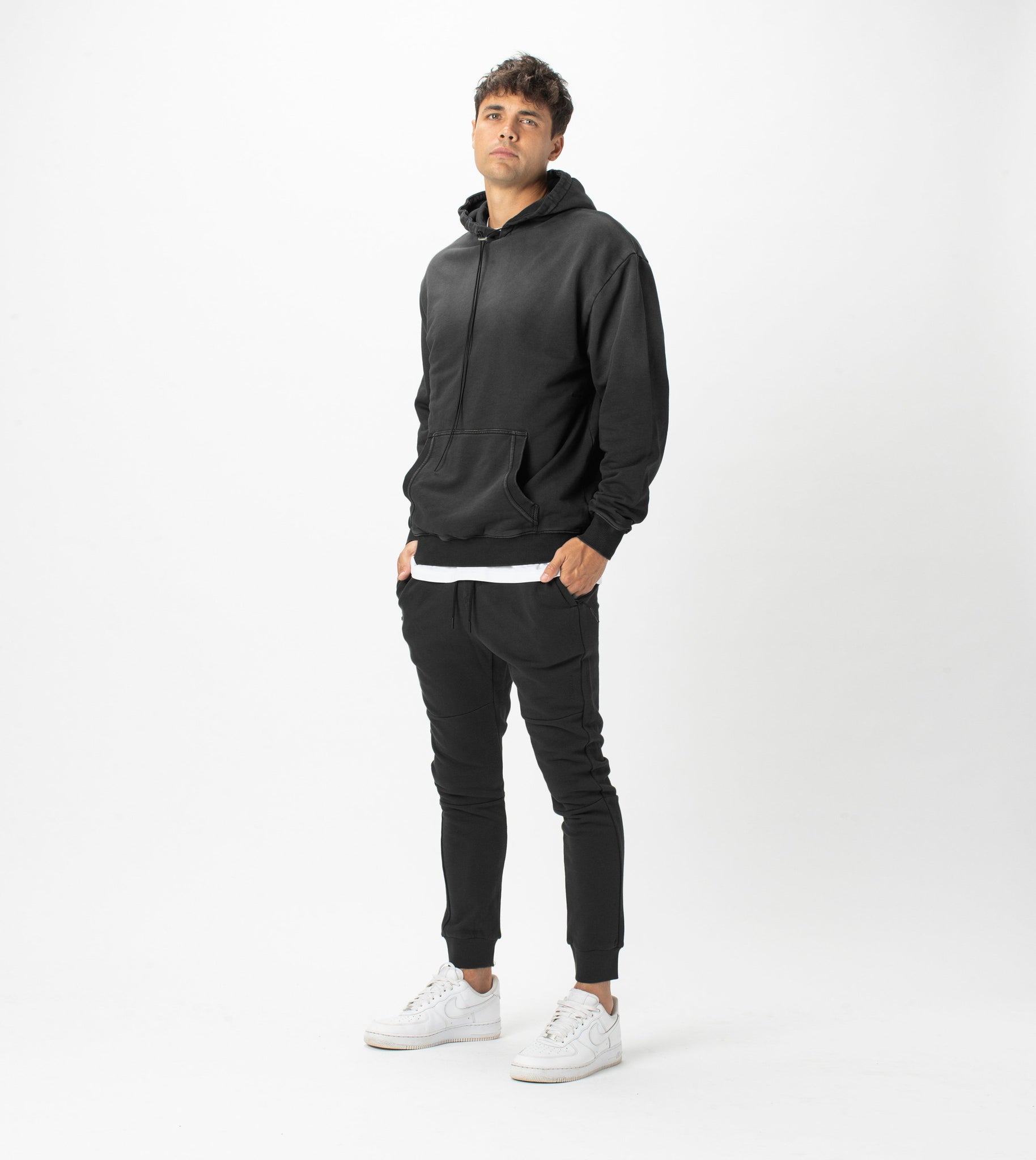 The ZANEROBE Field Hood Sweat in GD Black - Oversized retro style with french terry fabrication. We wear with the matching Fleece Sureshot Joggers.