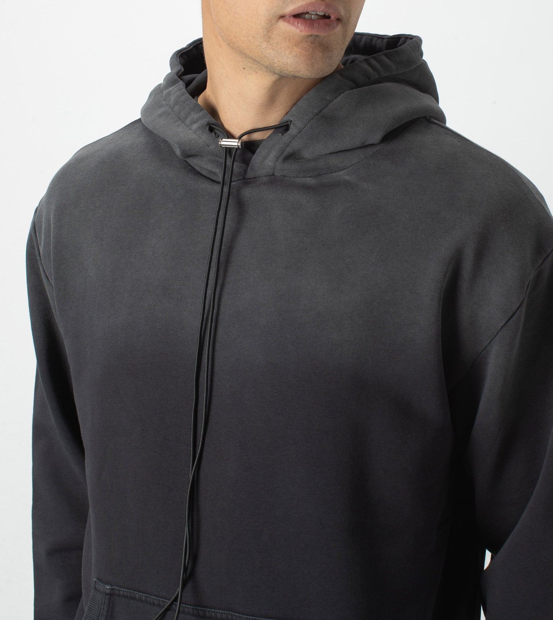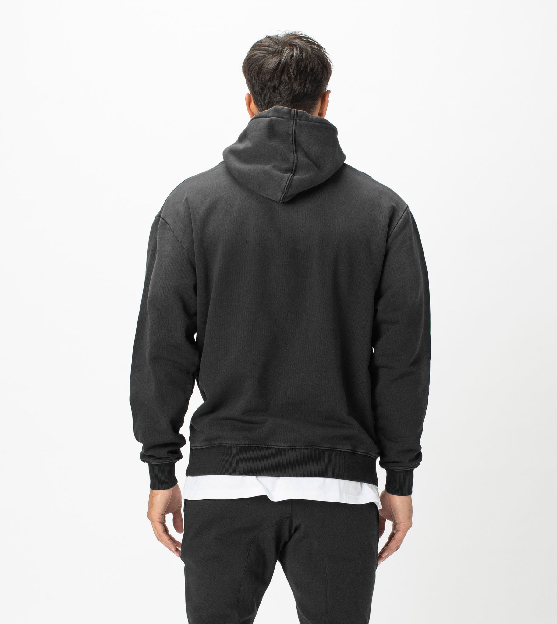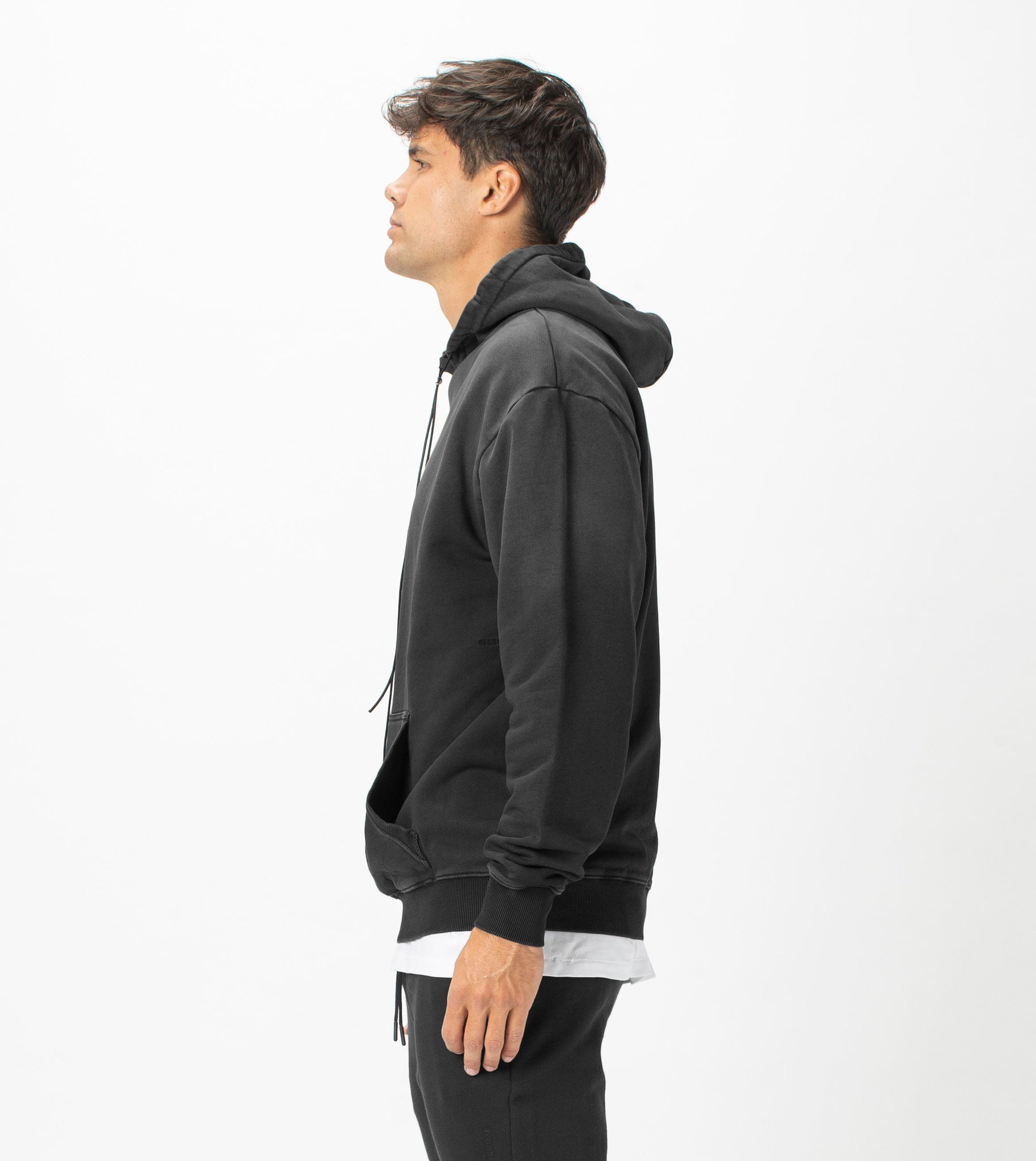 The ZANEROBE Field Hood Sweat in GD Black - Oversized retro style with french terry fabrication. We wear with the matching Fleece Sureshot Joggers.