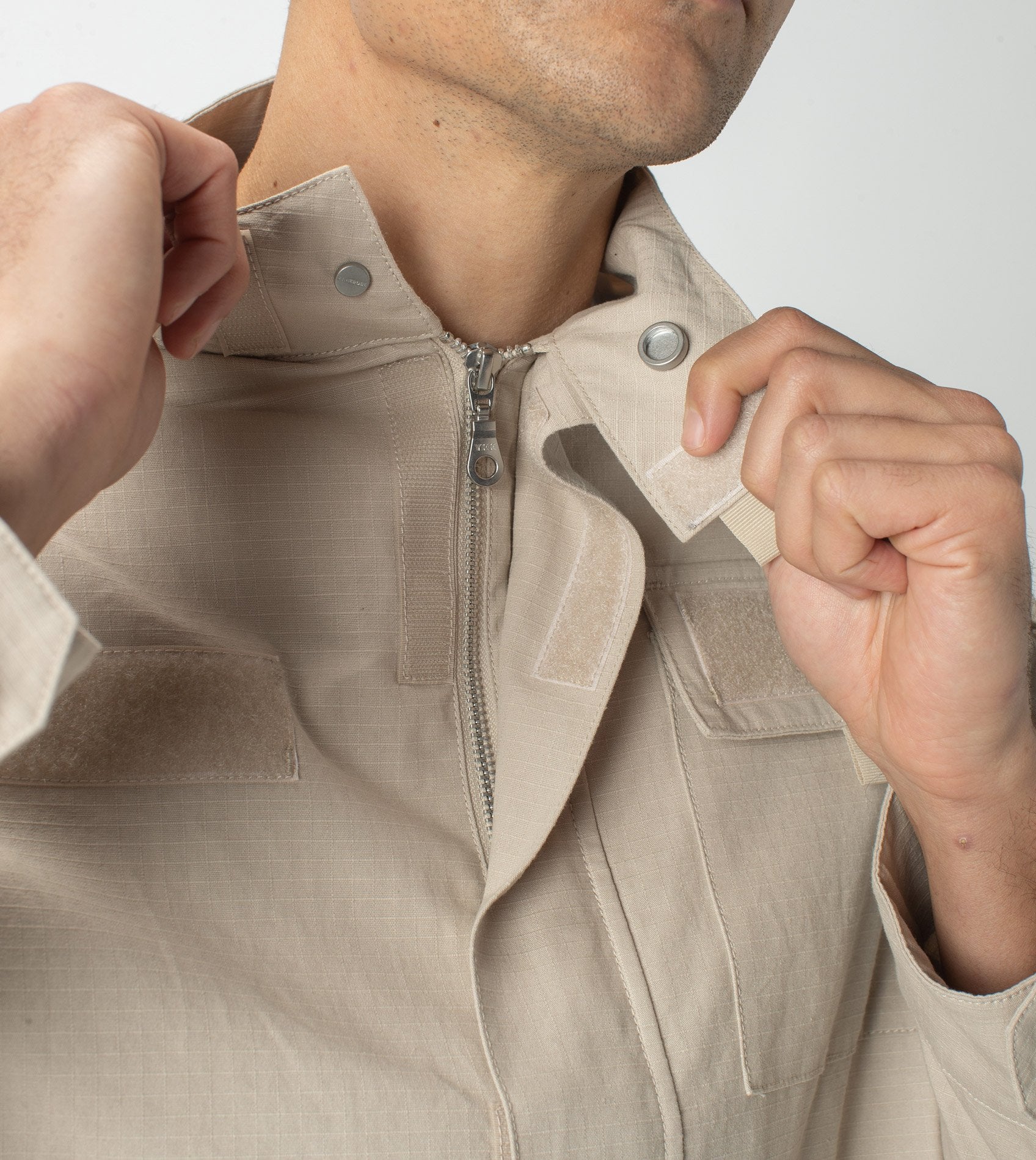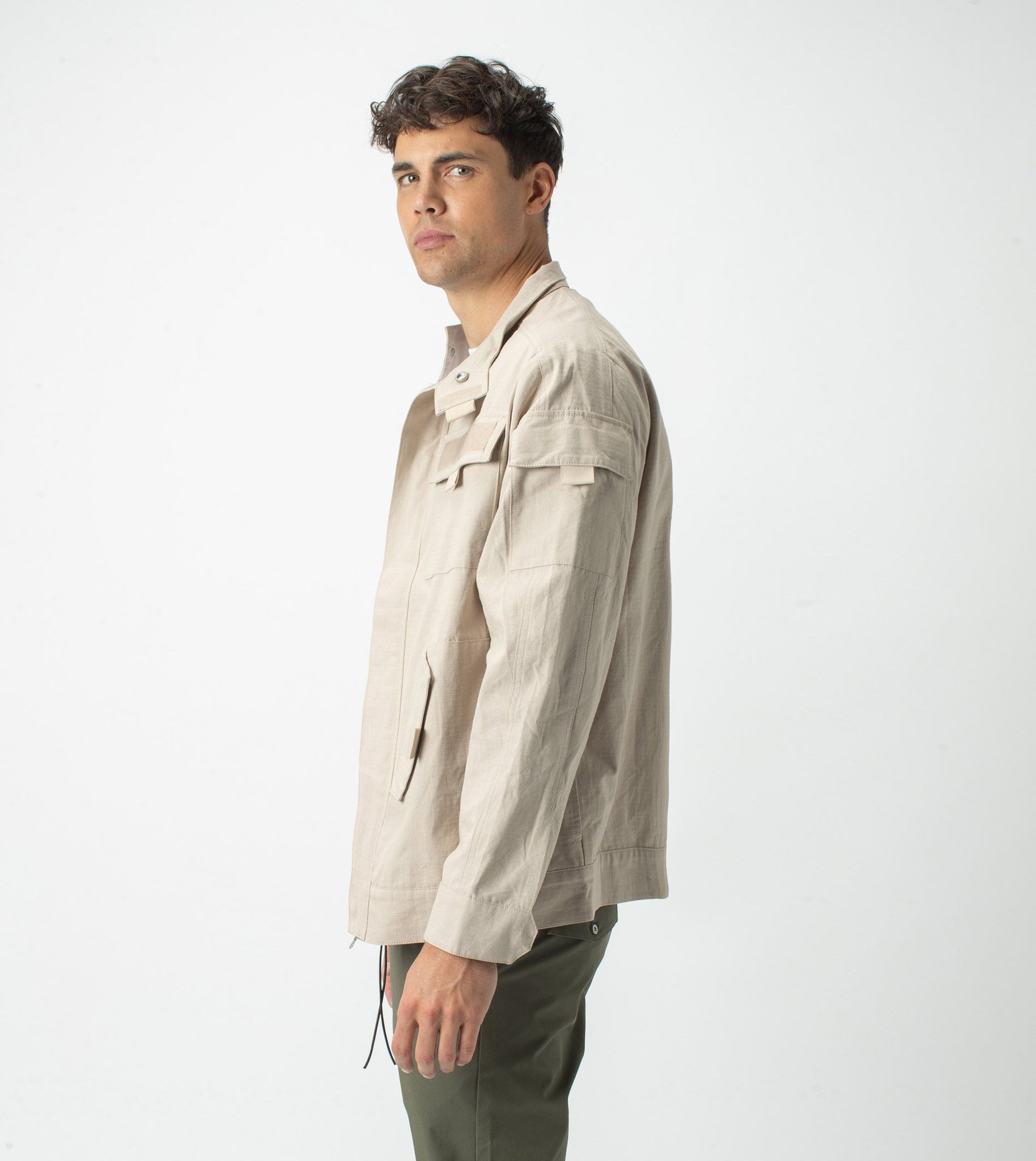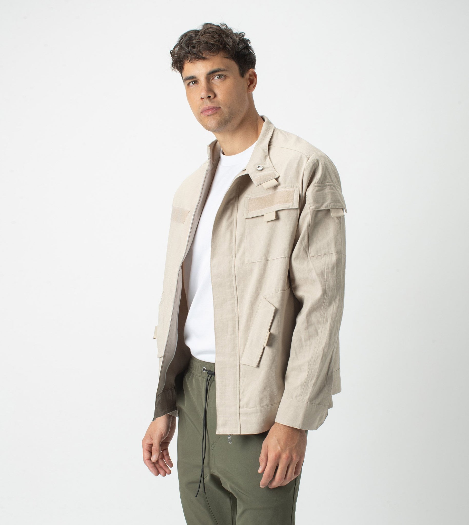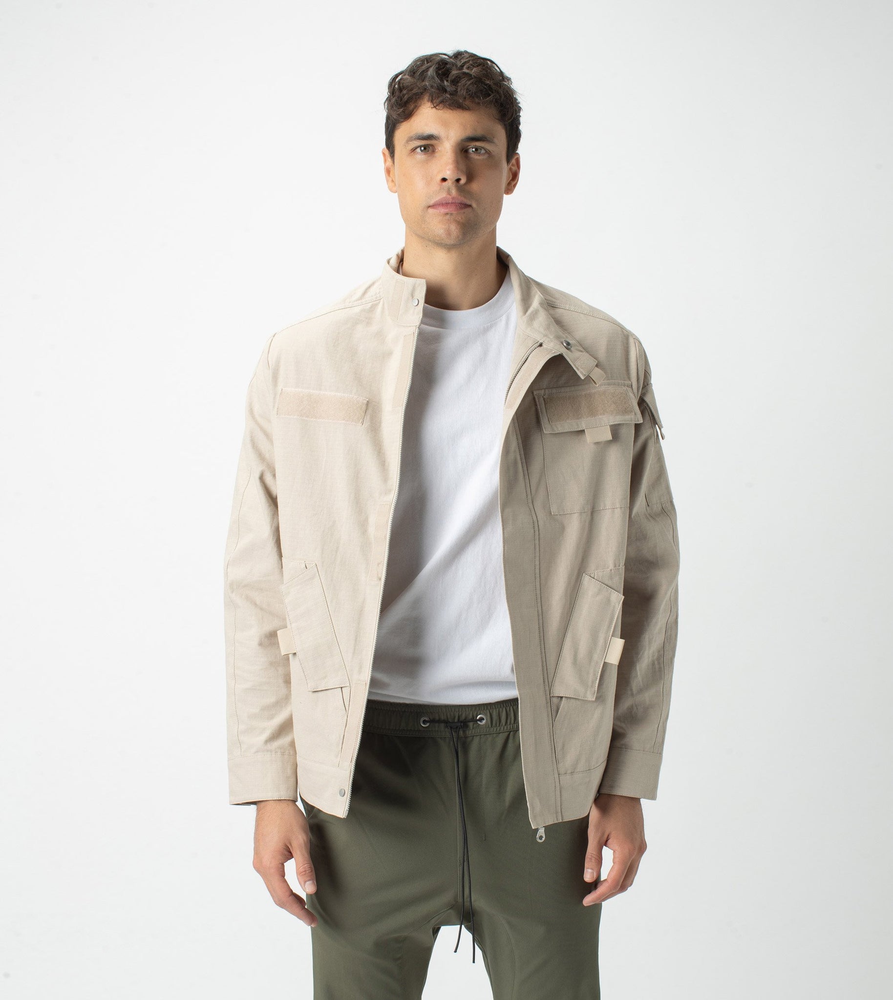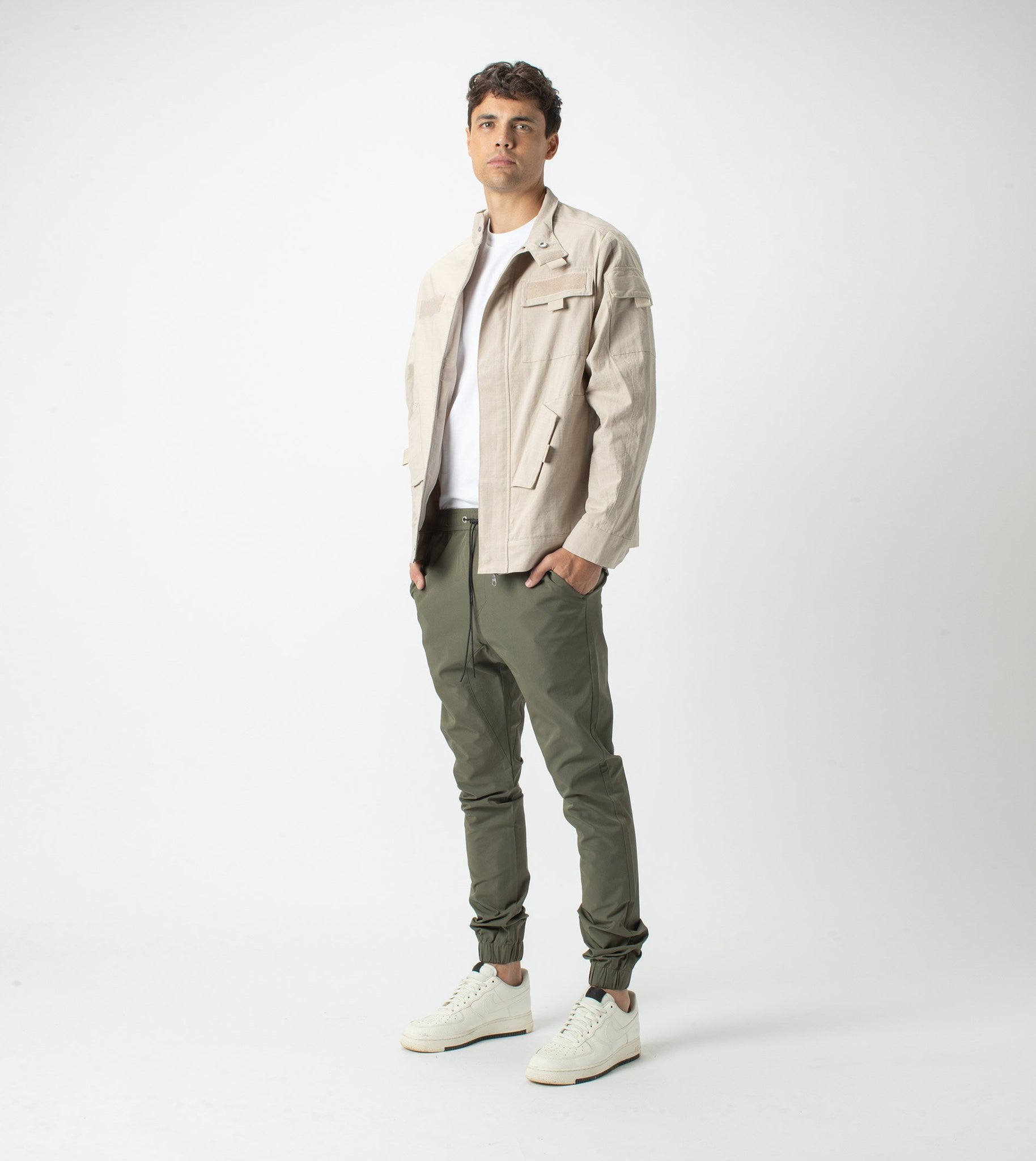 The ZANEROBE Field Jacket in Oat - Utility jacket inspired by heritage workwear. Styled here with the ZANEROBE Sureshot Tech Joggers.