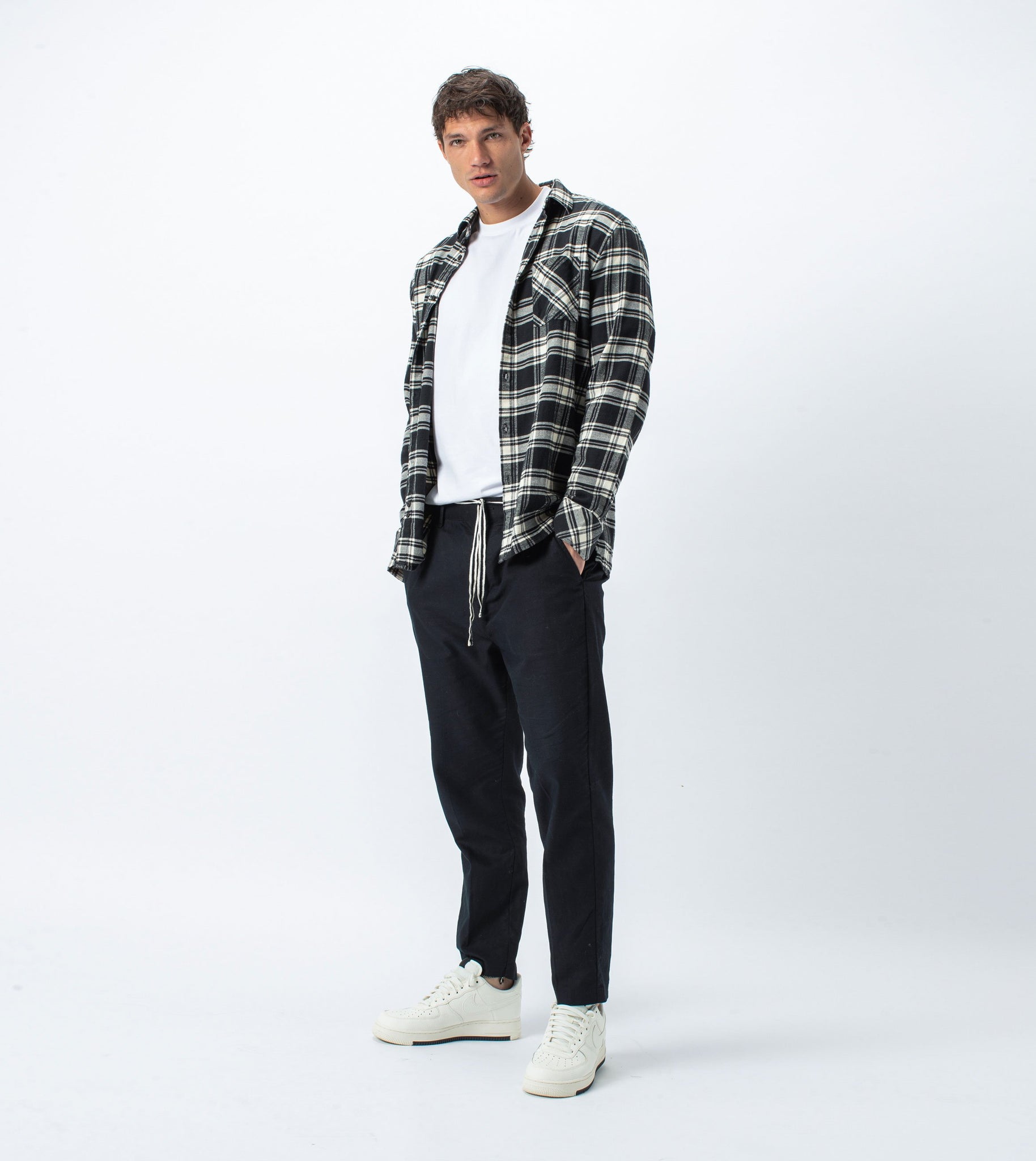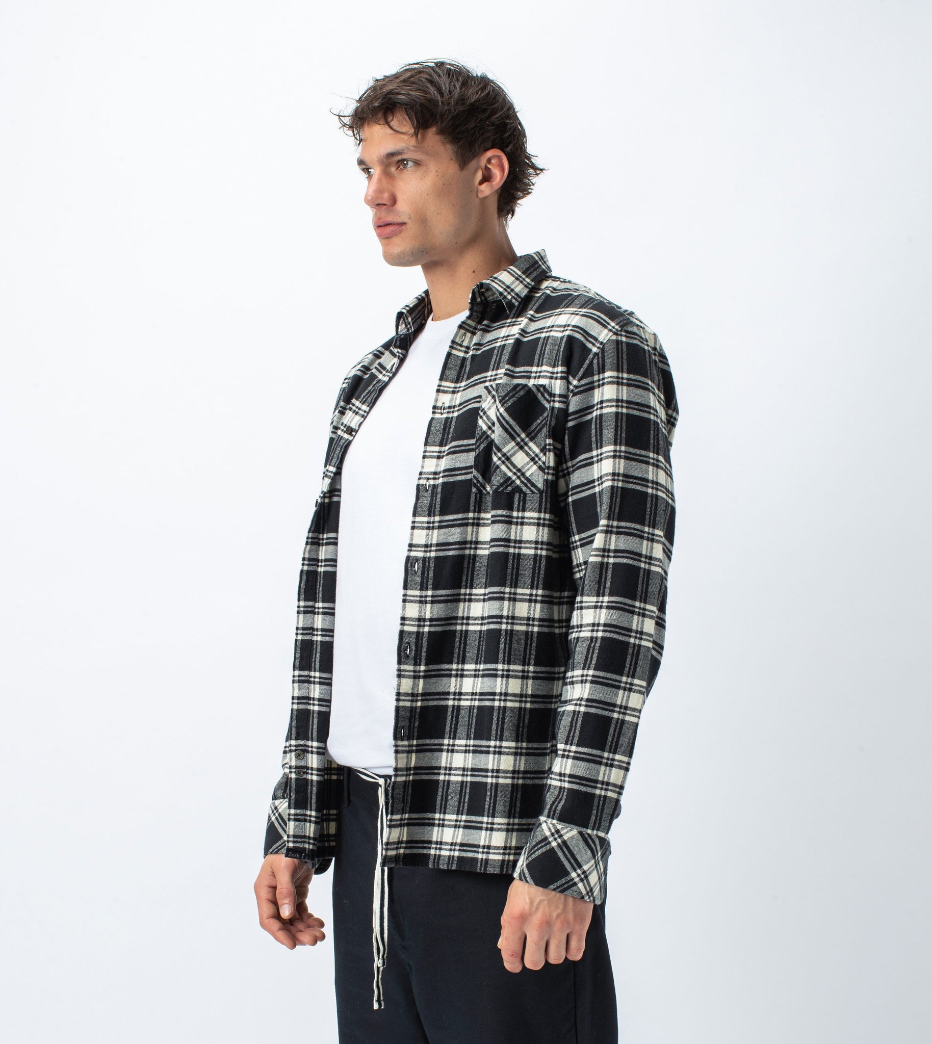 Flannel Lightweight LS Shirt Black/Milk - Sale