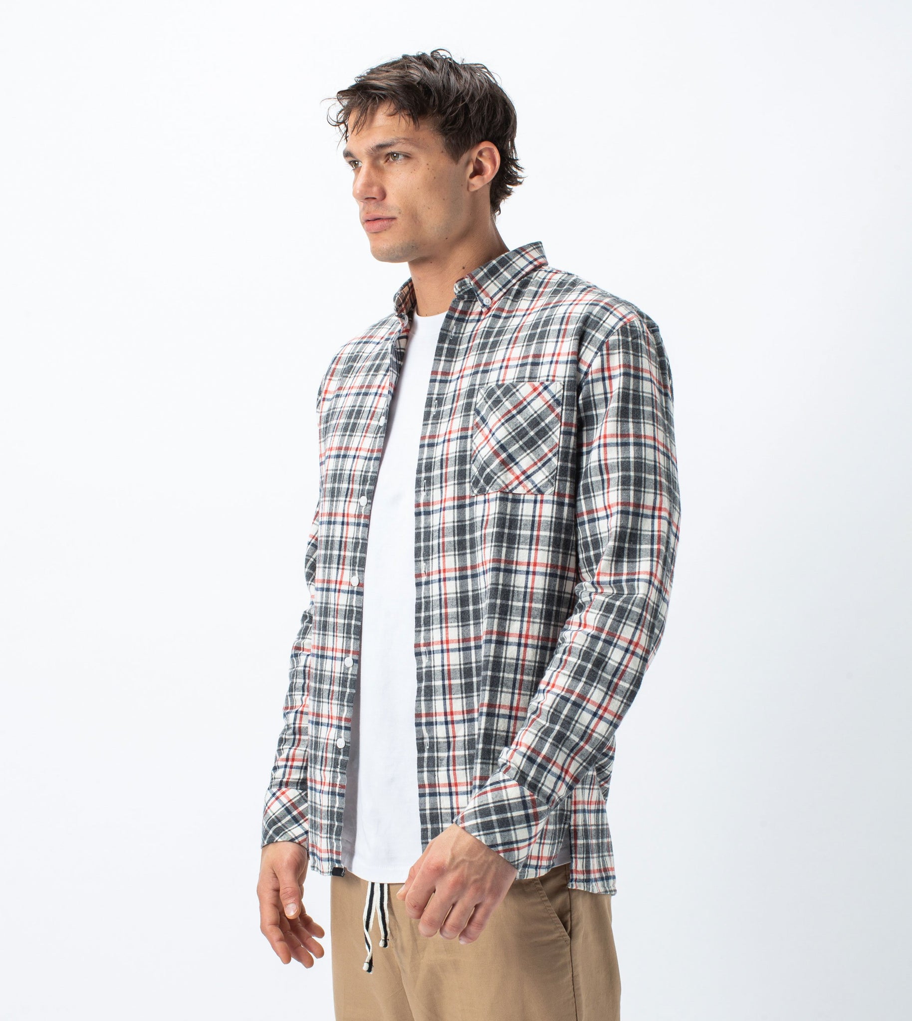 Flannel Lightweight LS Shirt Milk/Grey - Sale