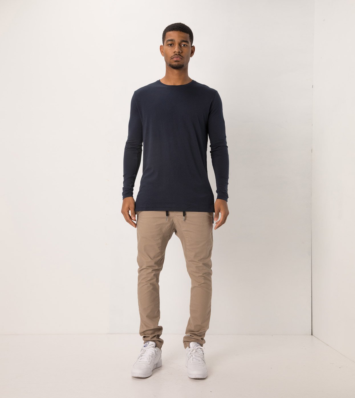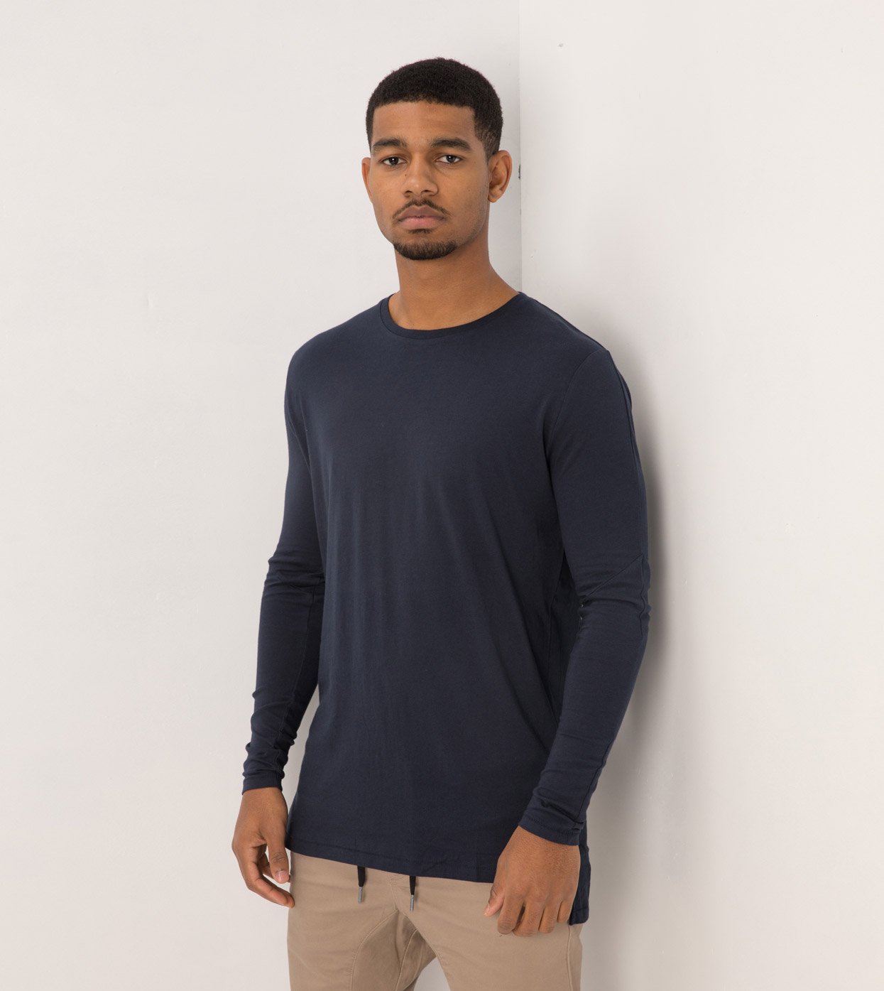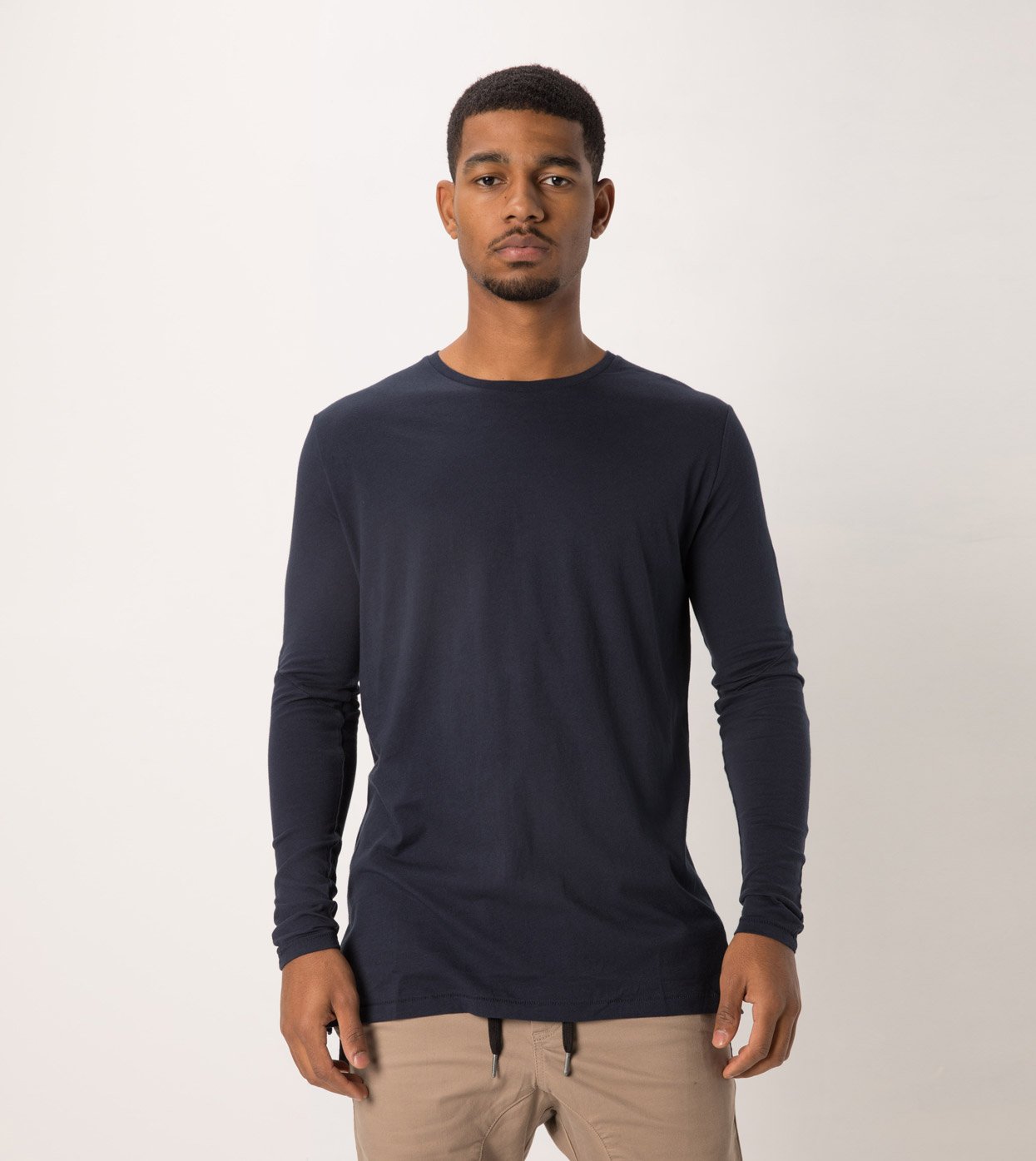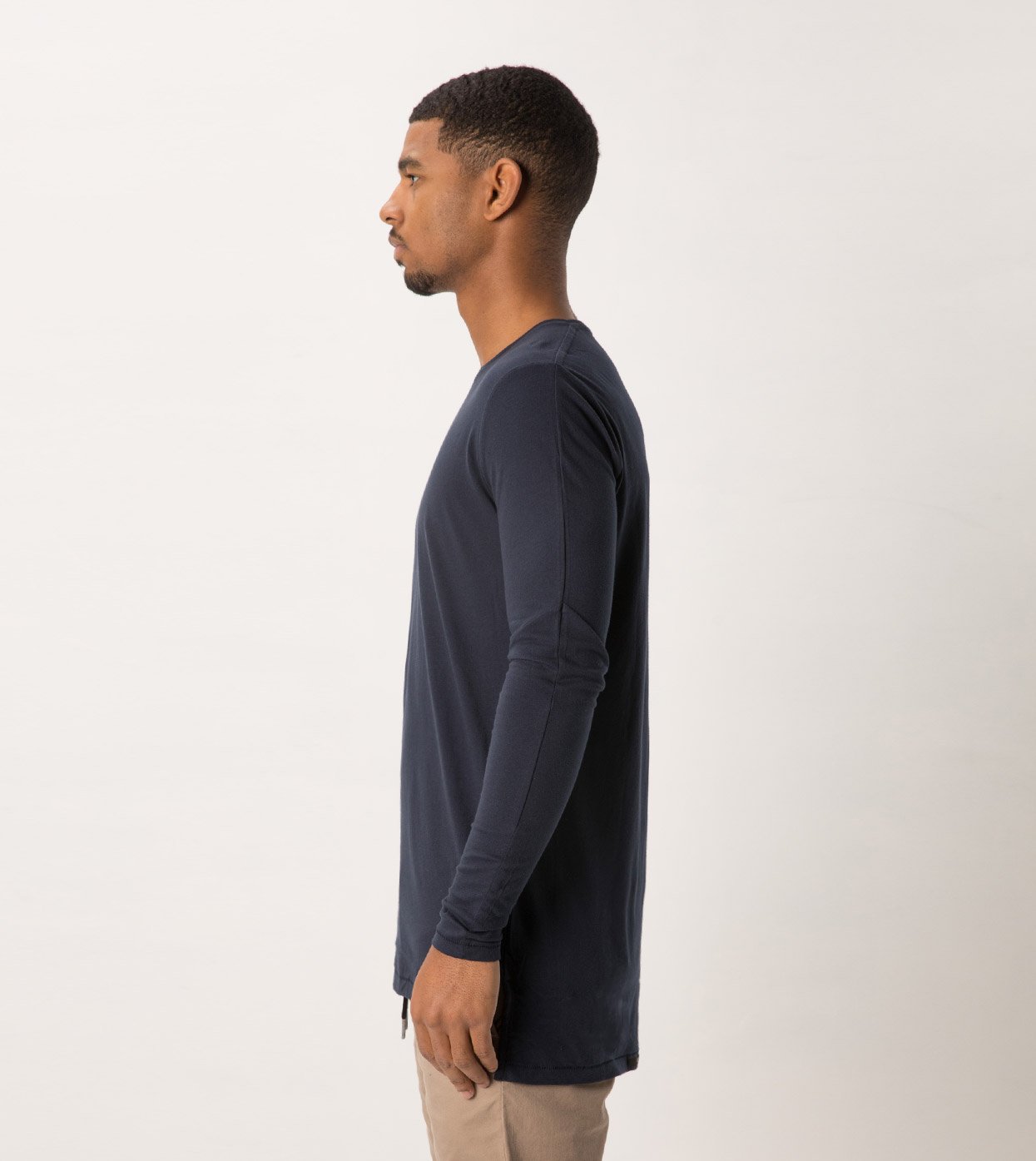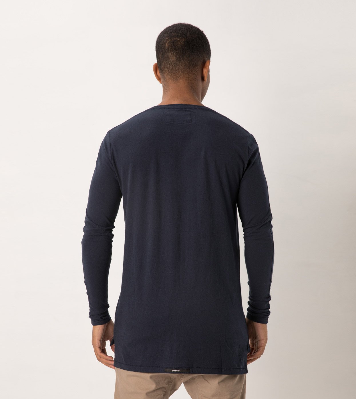 The ZANEROBE Flintlock LS Tee in Navy is our best selling basic Tee that comes back season after season. It's an easy to wear piece that features a longer back with split sides. Simple yet versatile - it's a wardrobe essential. Wear with our classic Salerno Chinos. Please note the back length is 81 cm on a size medium and this varies by 1 cm per size.