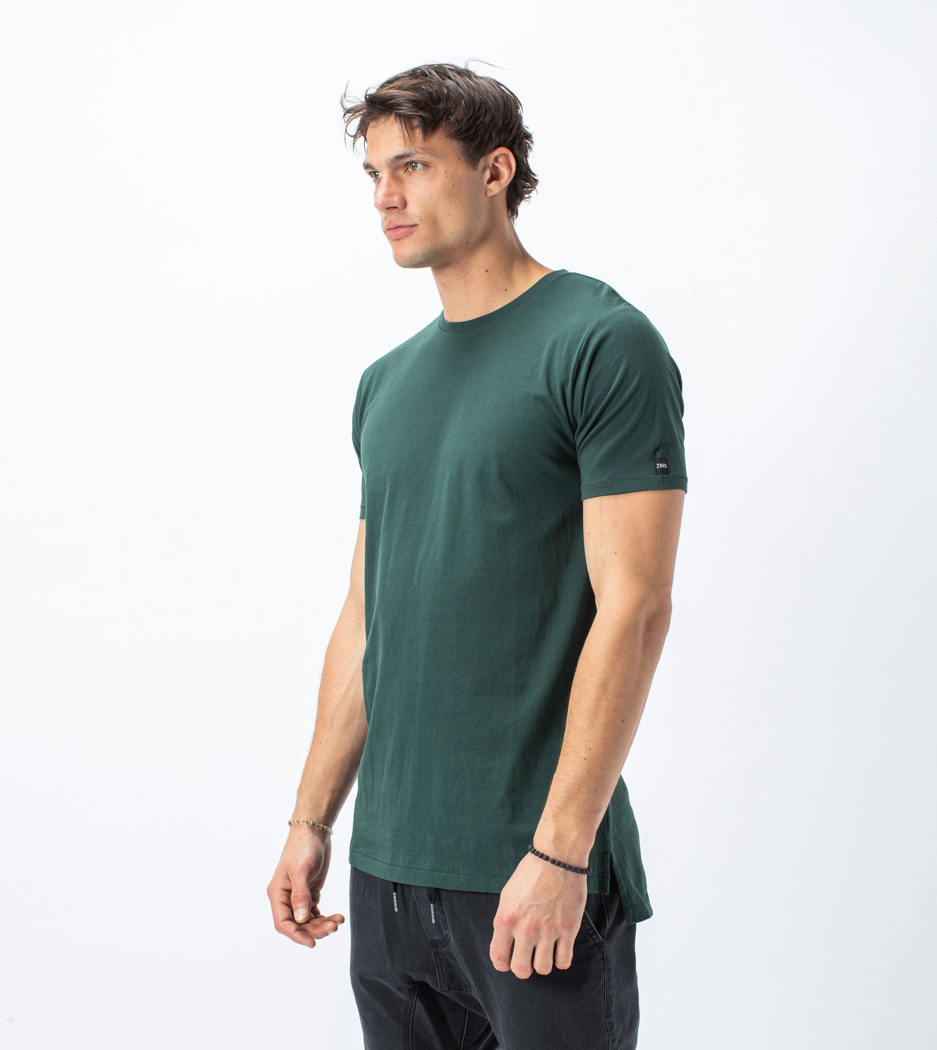 The ZANEROBE Flintlock Tee in Forest - our signature basic Tee with elongated back and side split. We wear with the classic Sureshot Jogger.