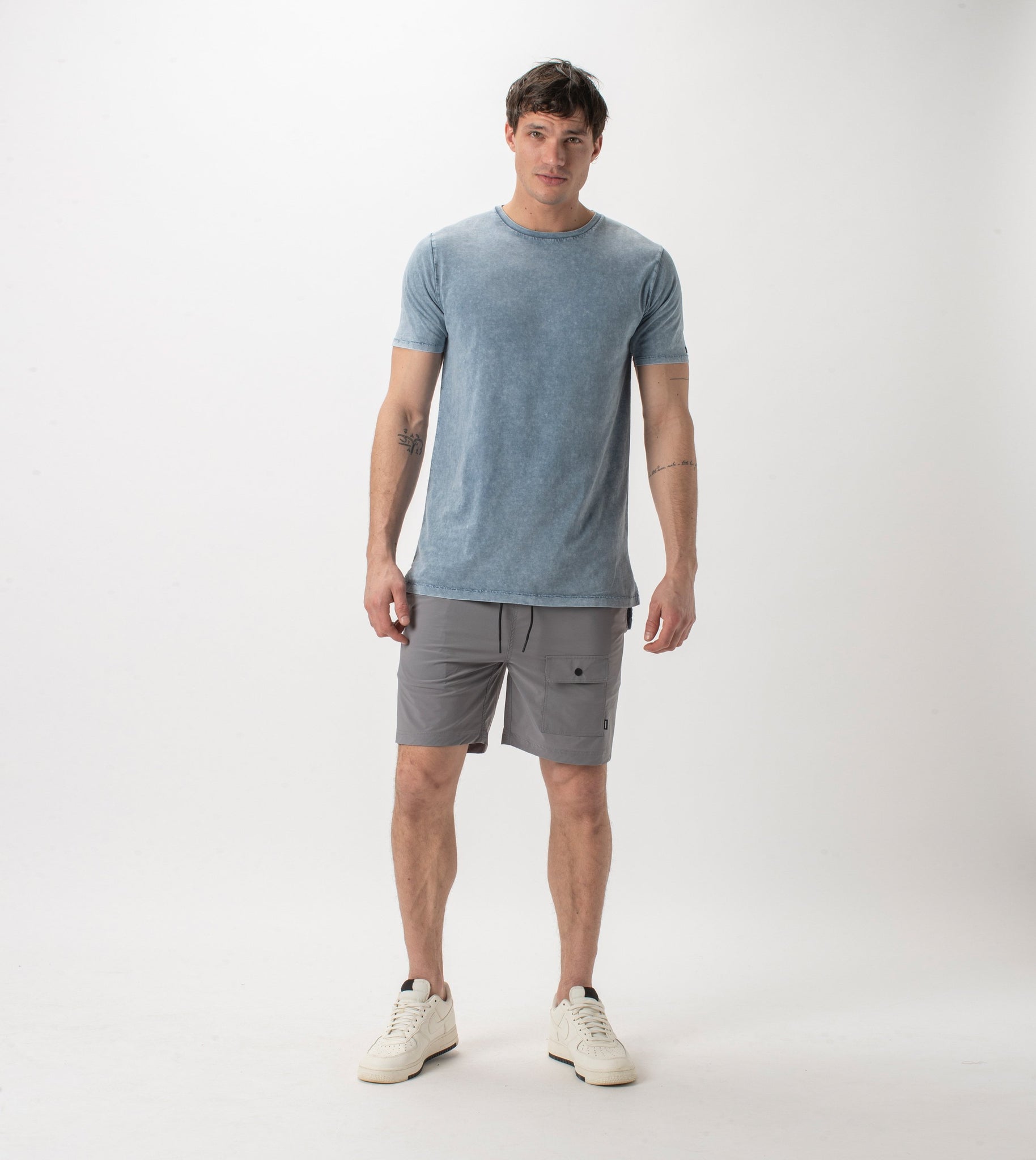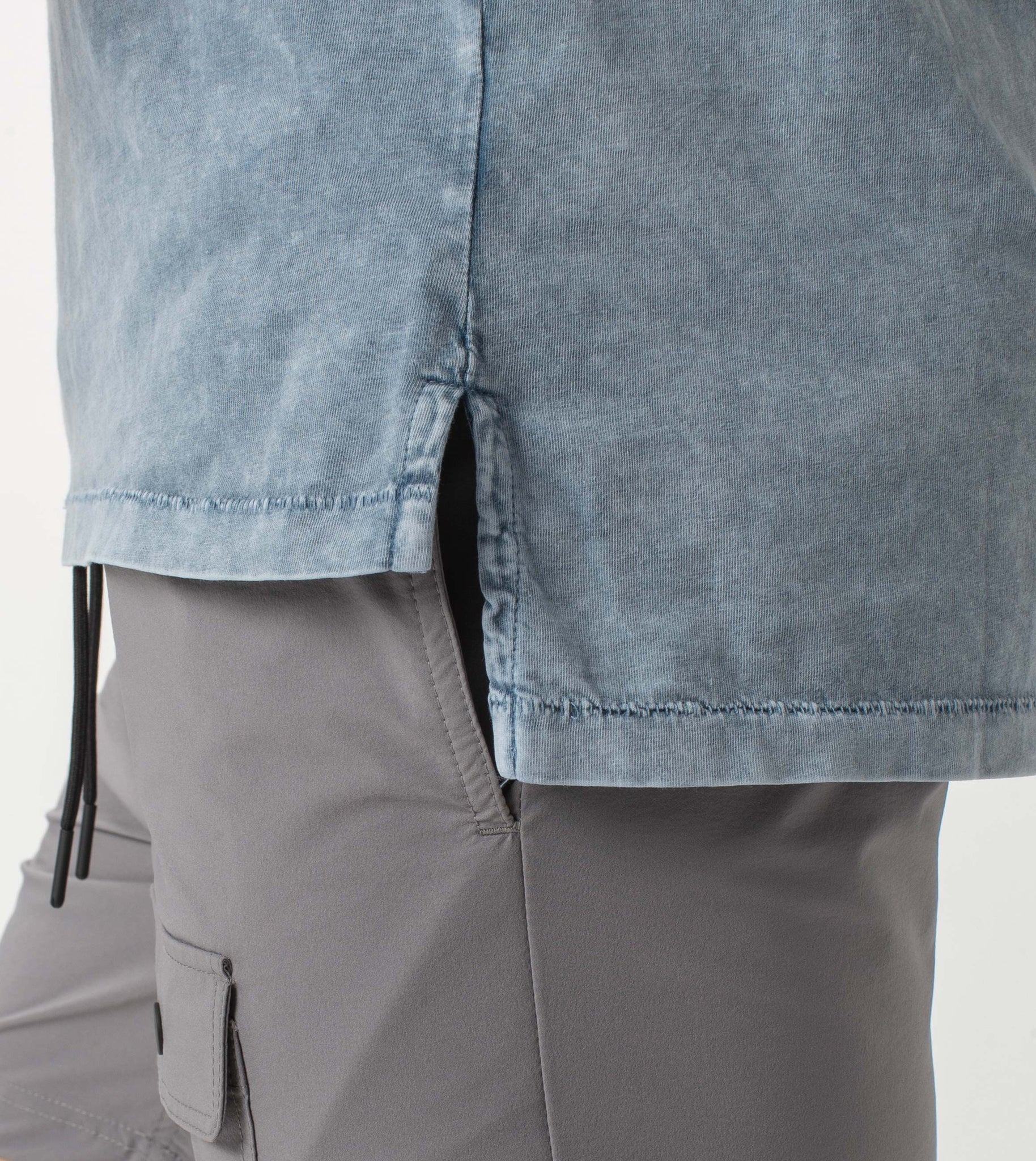 The ZANEROBE Flintlock Tee in Salt Blue - best selling Tee silhouette that comes back season after season. We wear with the constructed waist Snapshot Cargo Short.