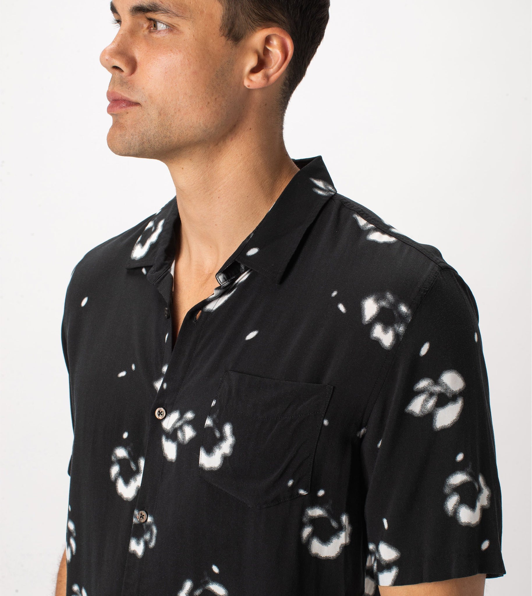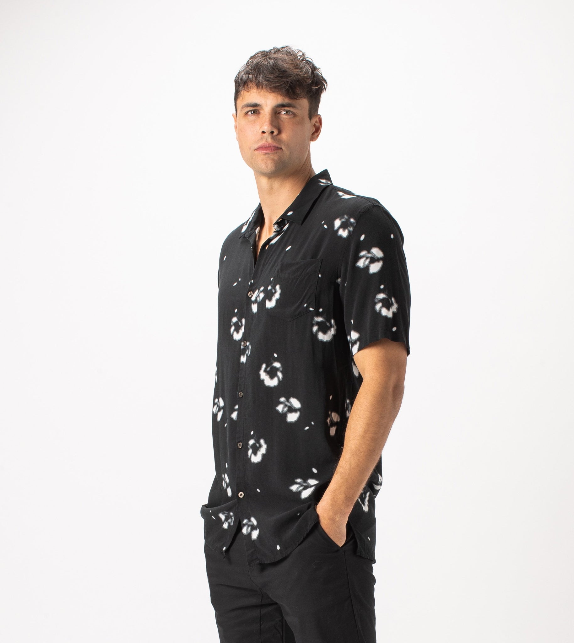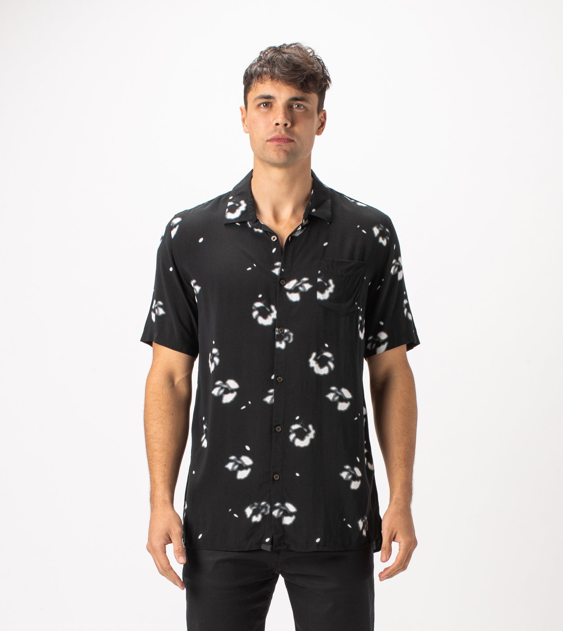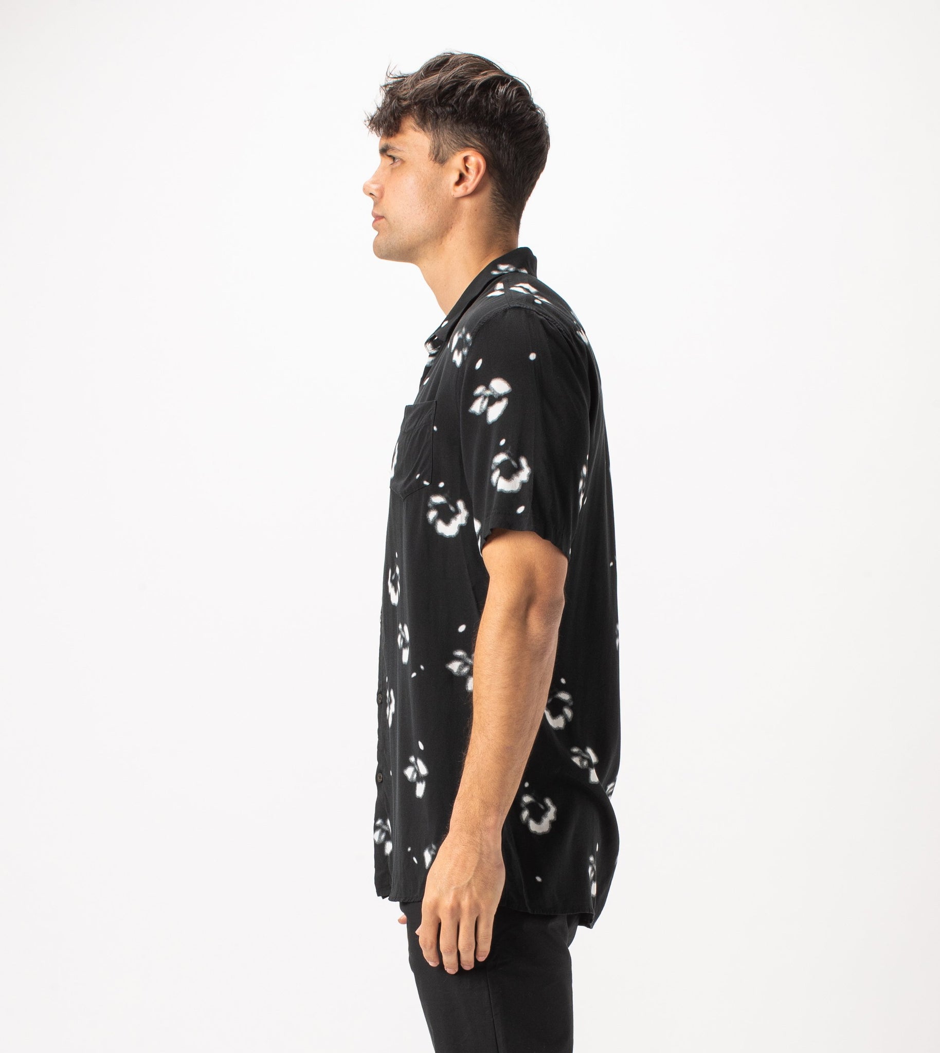 The ZANEROBE Flower SS Shirt in Black - lightweight relaxed shirt, featured here with our classic Joe Blow Jeans.