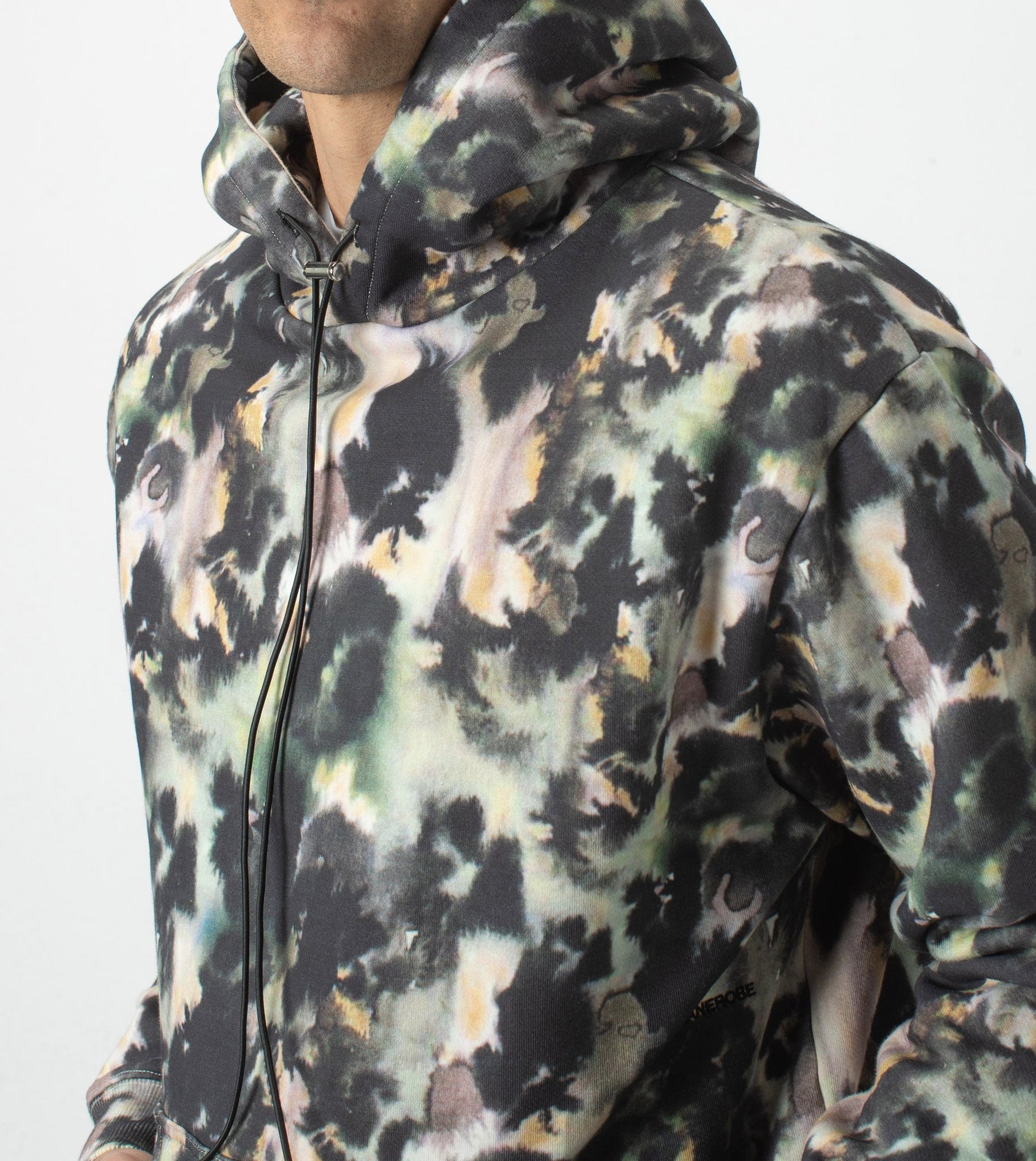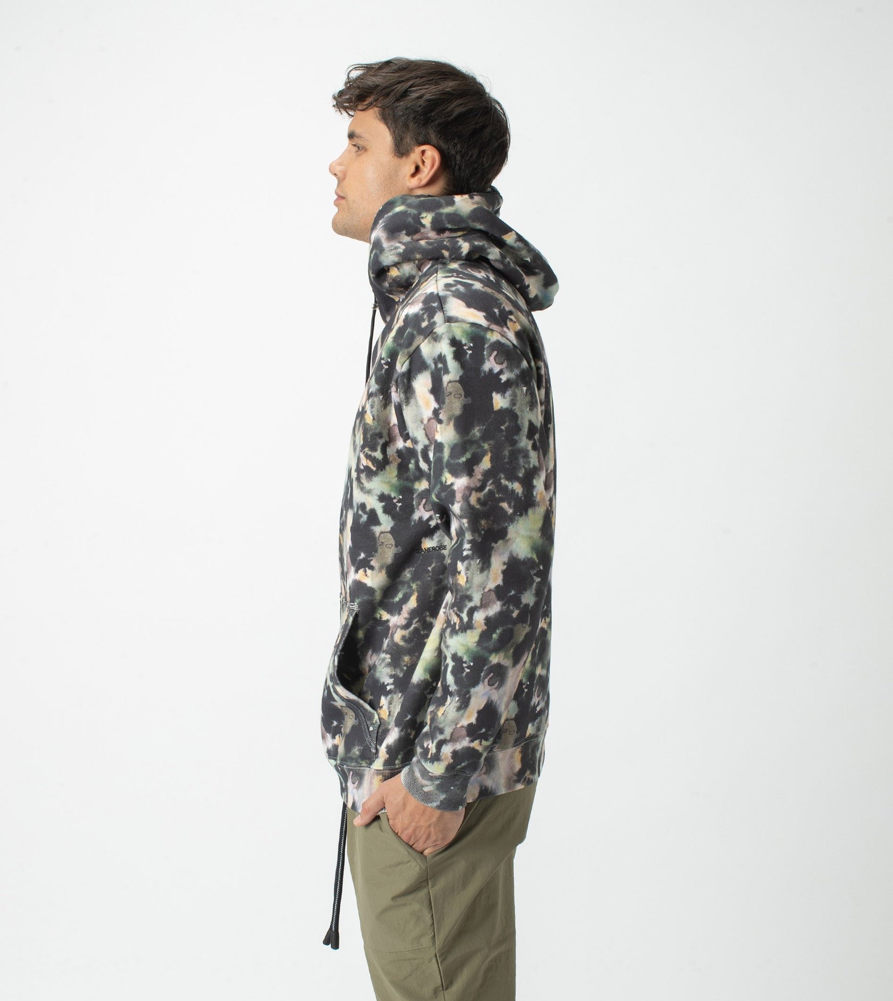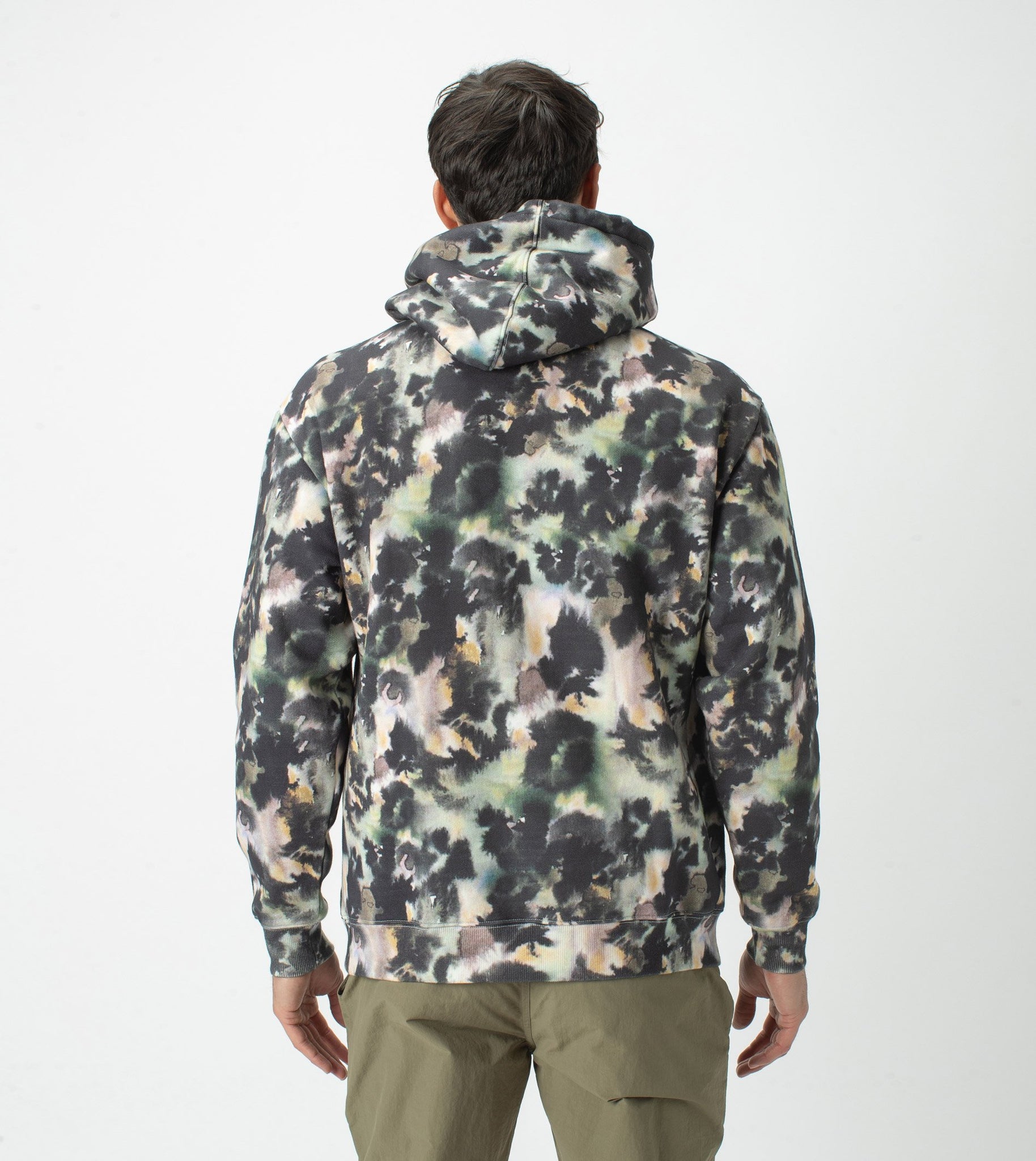 The ZANEROBE Foliage Hood Sweat in Moss Multi - Oversized retro style with a fleece fabrication. We wear with our signature Sureshot Joggers.