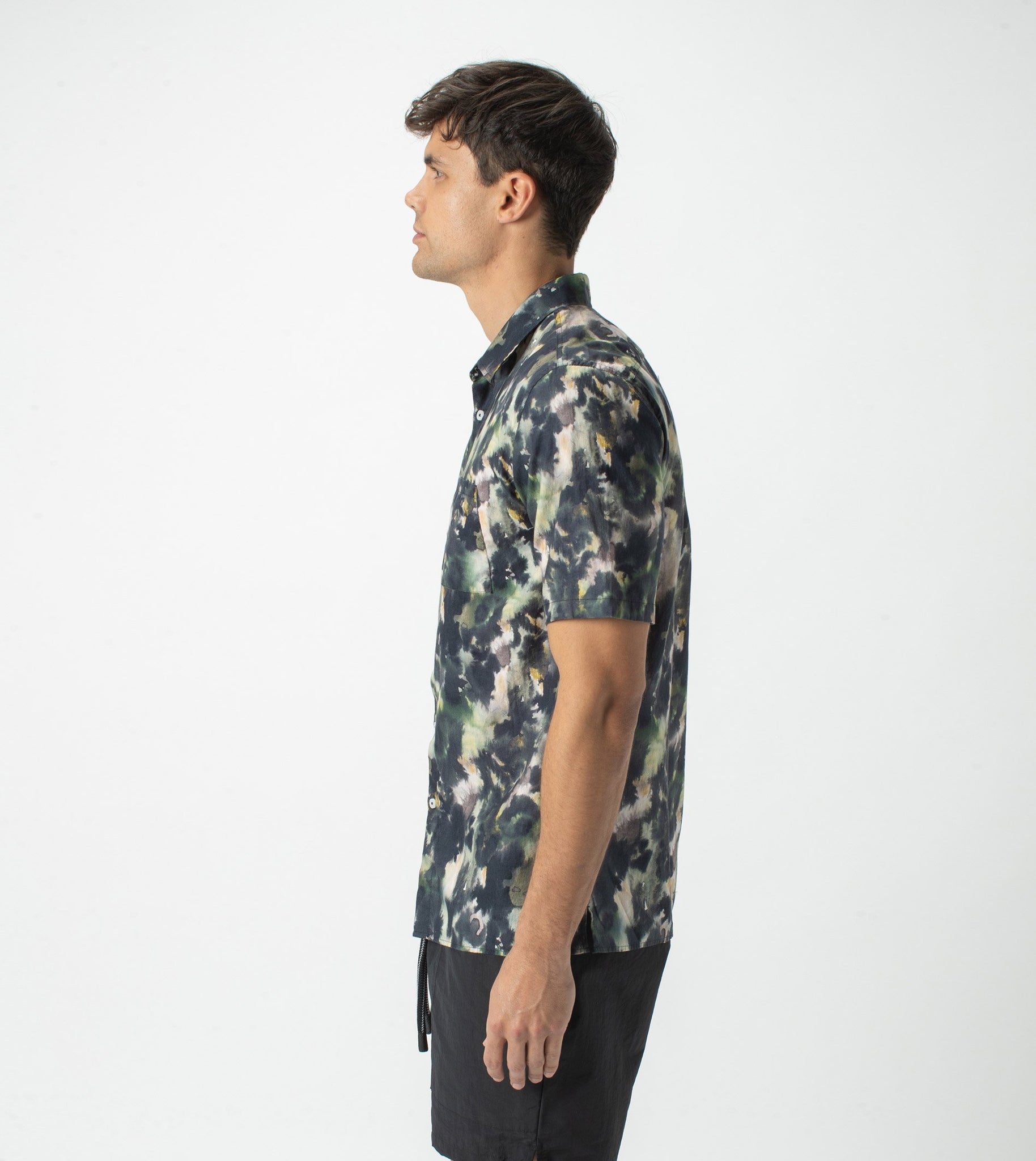 The ZANEROBE Foliage SS Shirt in Moss Multi - lightweight relaxed shirt, we wear with any of our signature Sureshot Joggers or Walk Short styles.