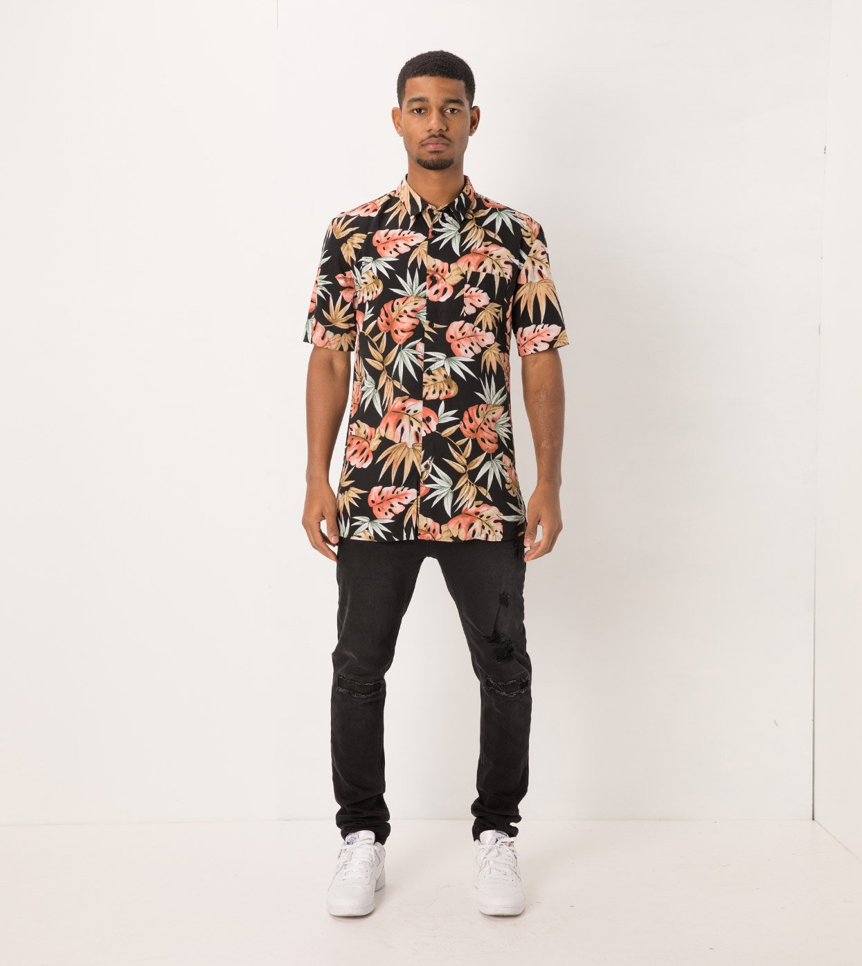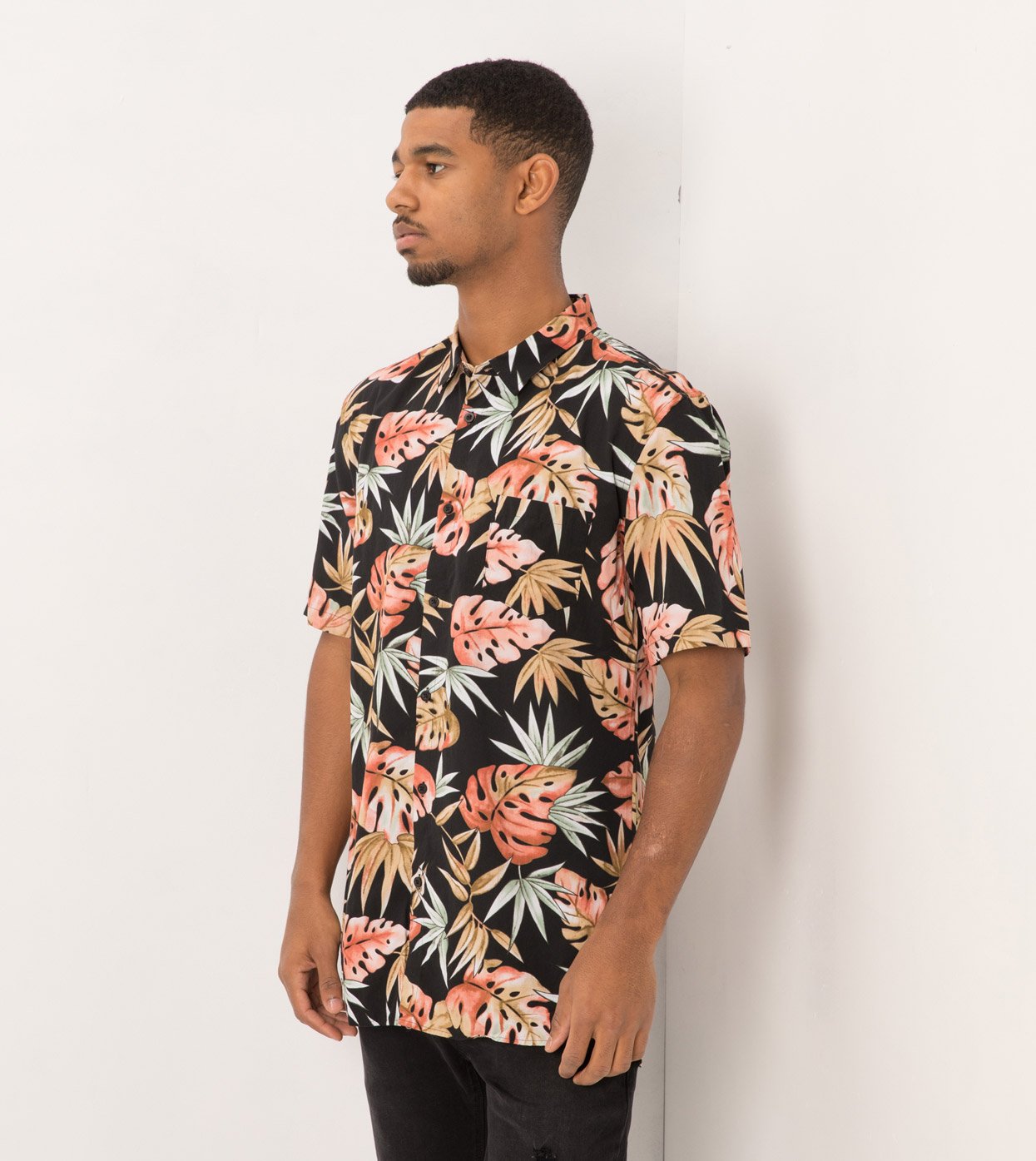 The ZANEROBE Forage SS Shirt in Washed Black - yardage print, standard shirt collar, chest pocket, boxy fit, stepped hem and side split details. Wear with our classic Joe Blow Jeans.