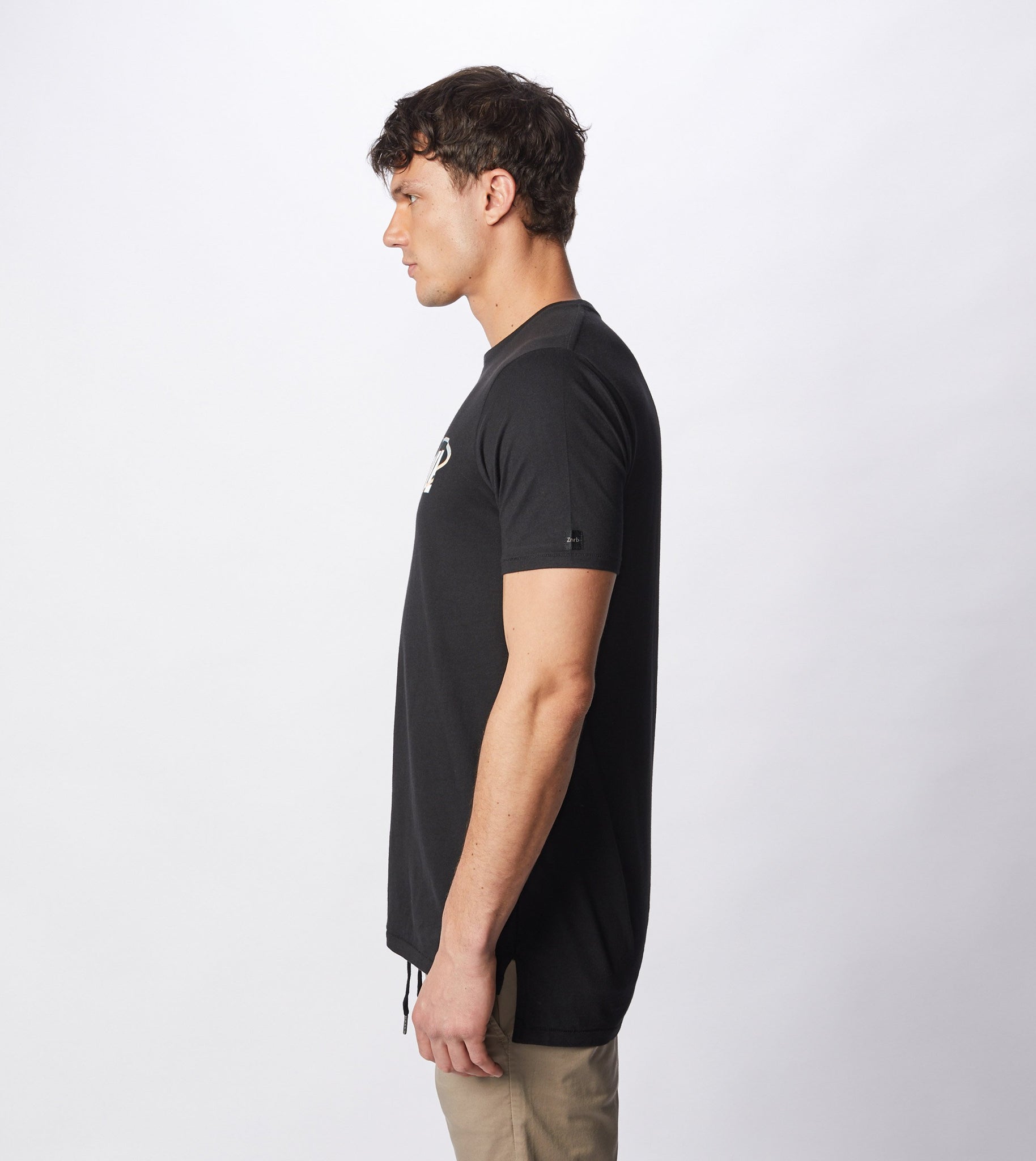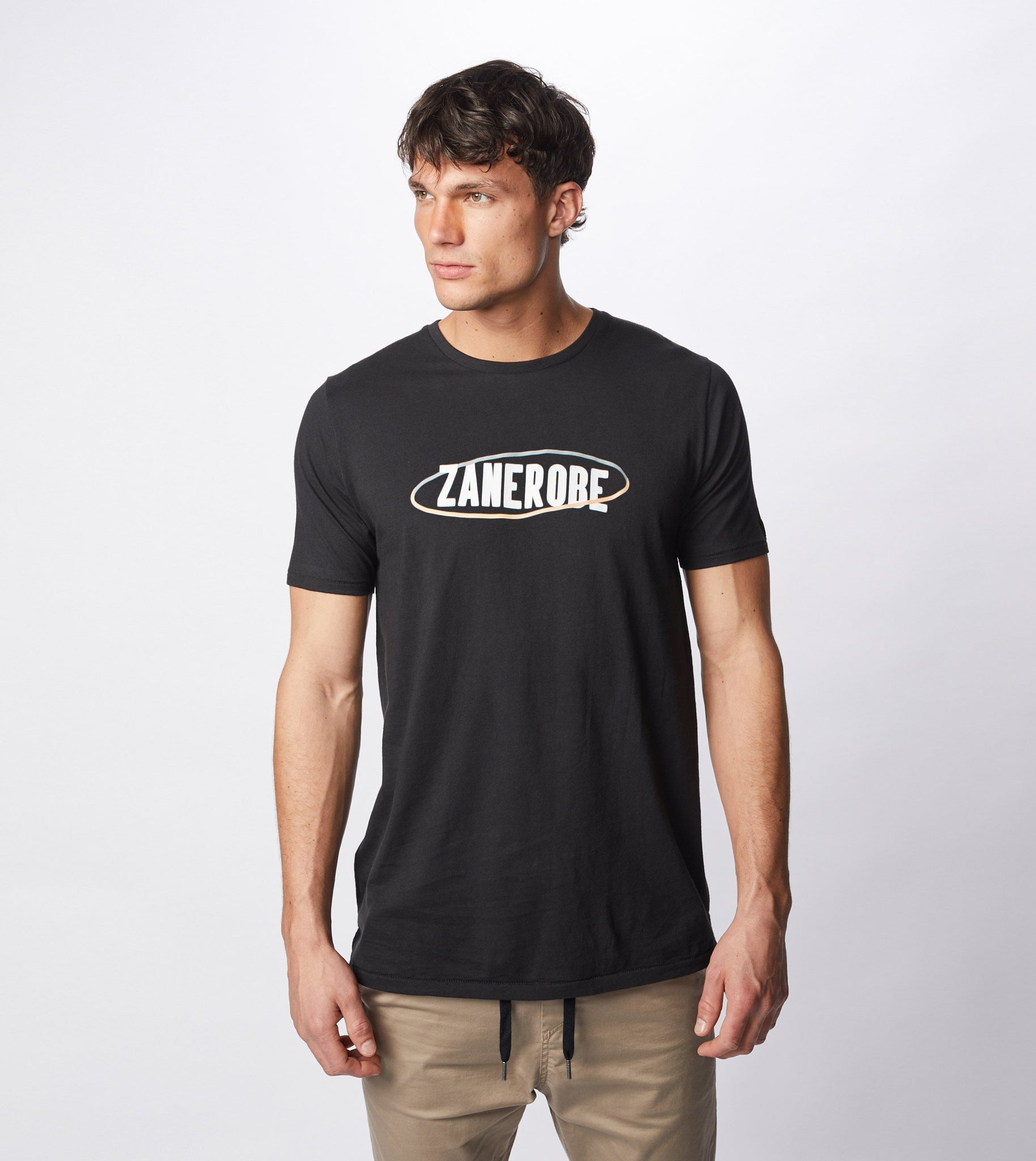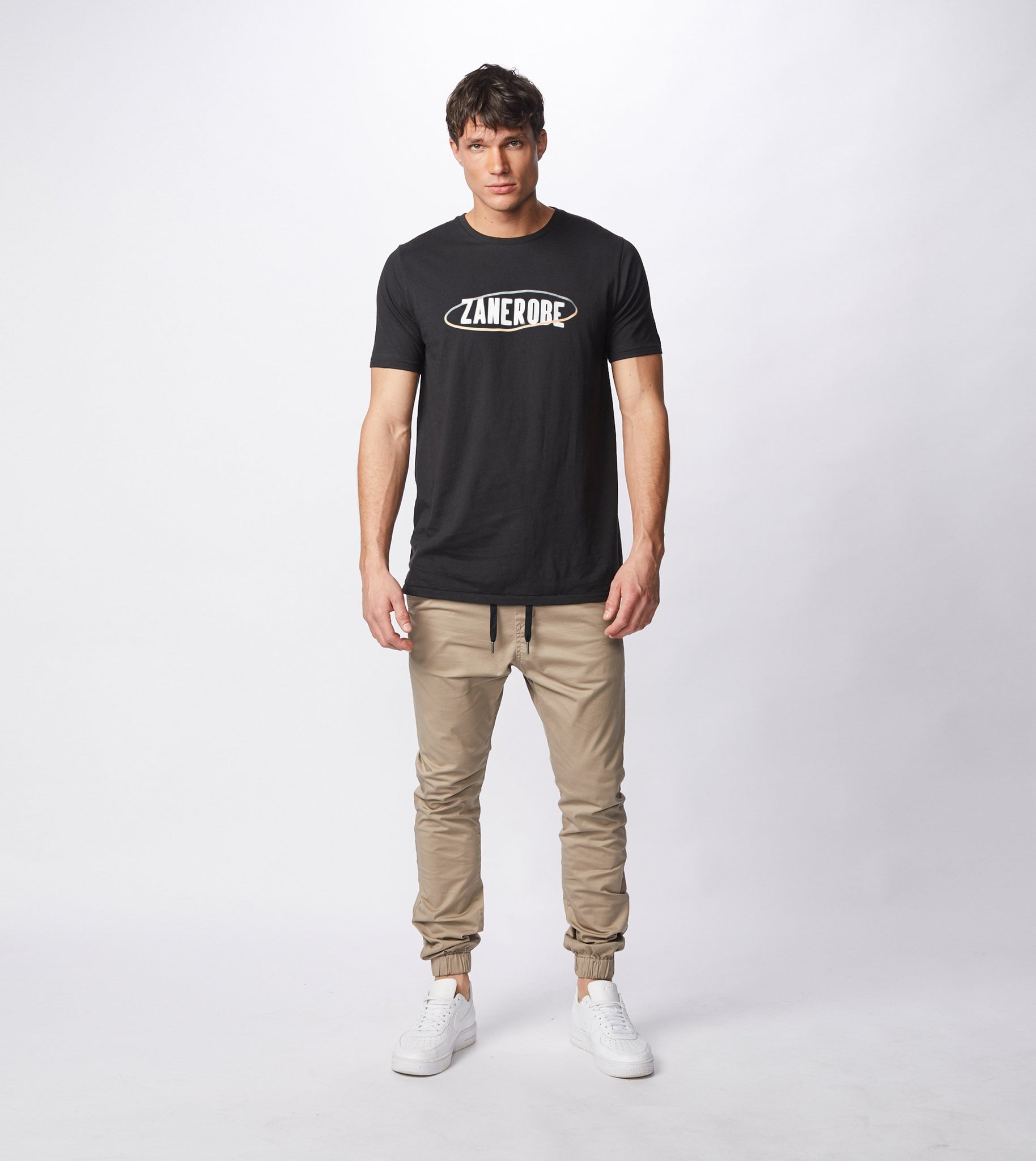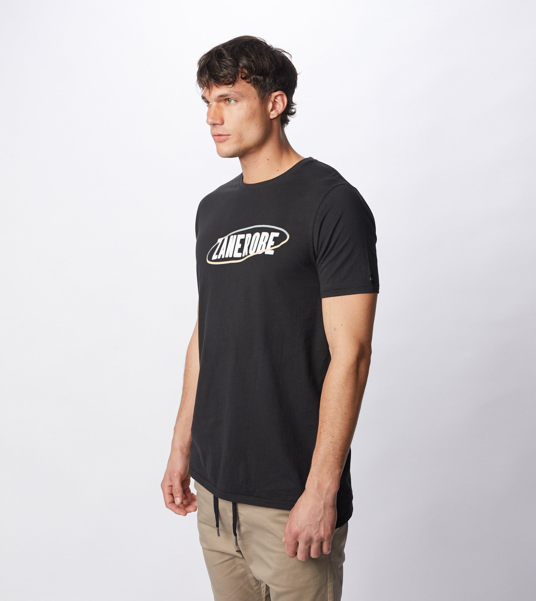 The ZANEROBE Global Flintlock Tee in Black - our best selling basic Tee with our signature Global print. We wear ours with Sureshot Lightweight Joggers.