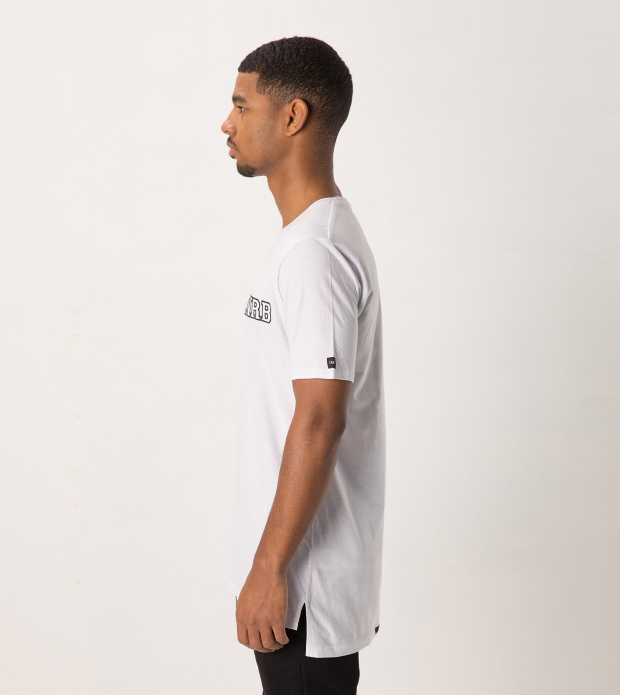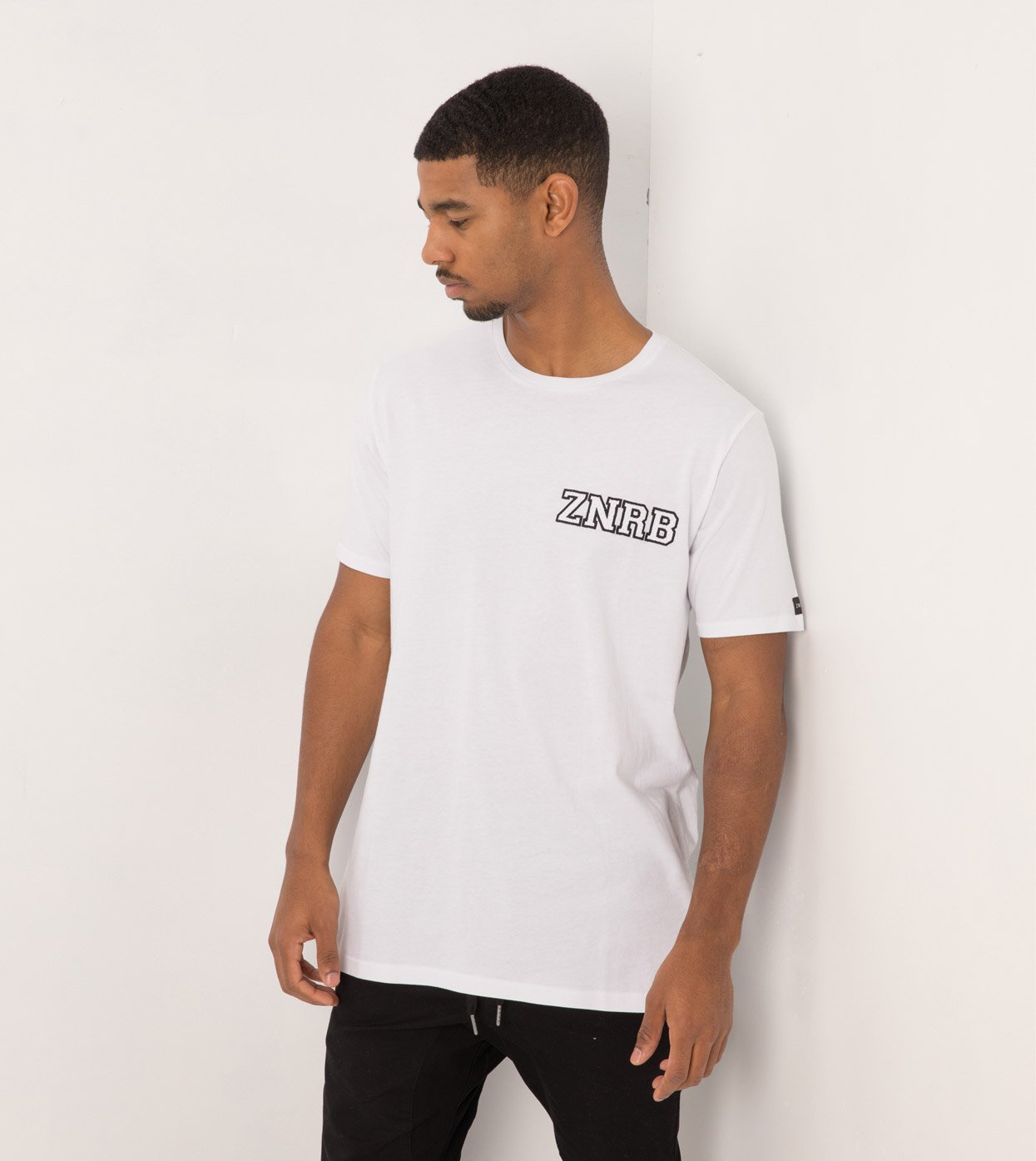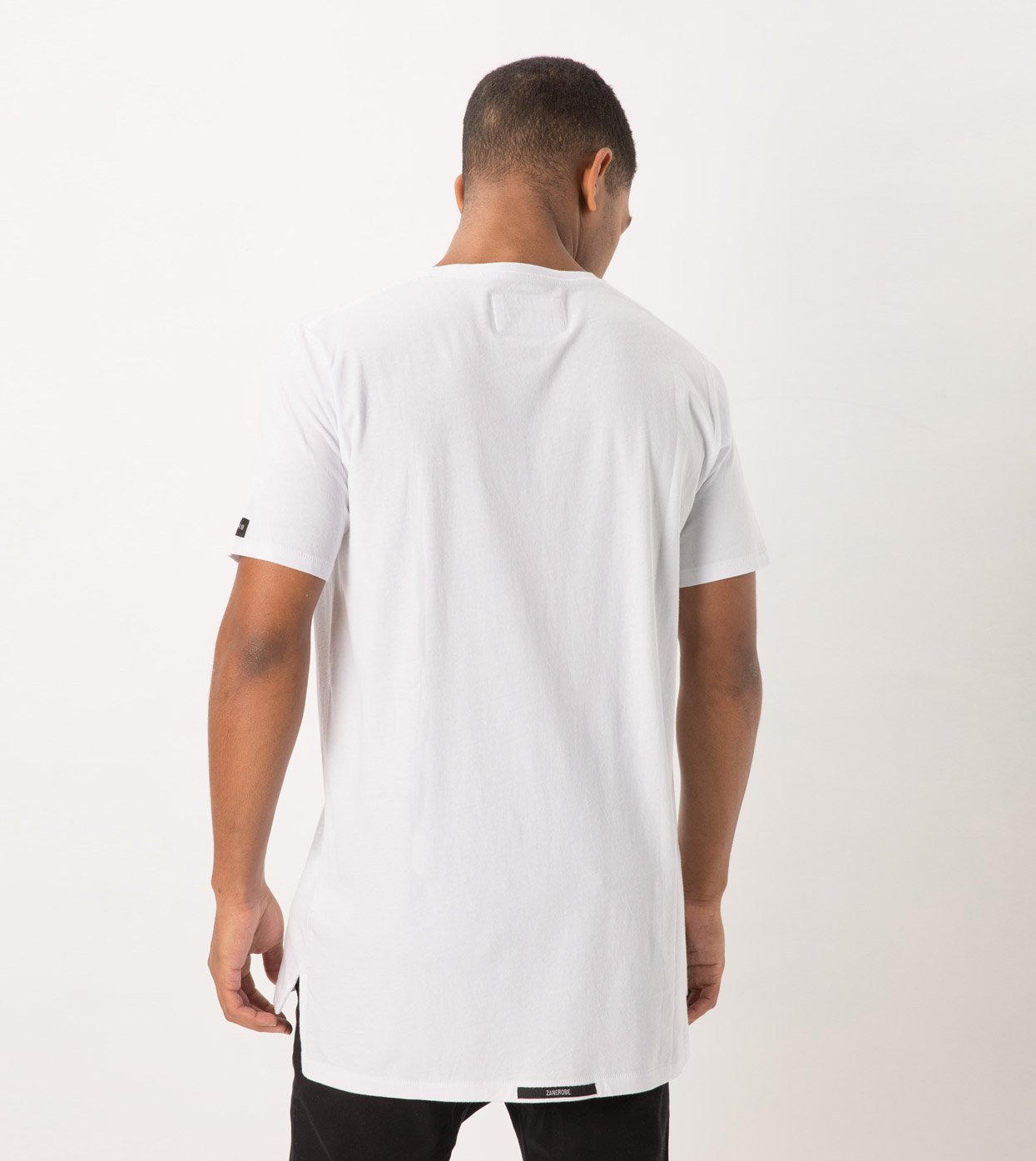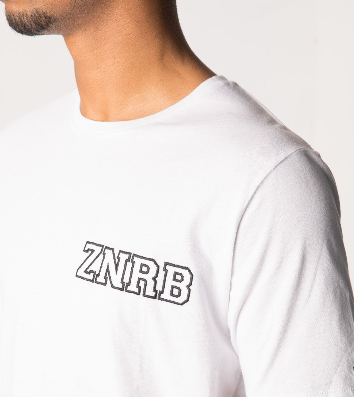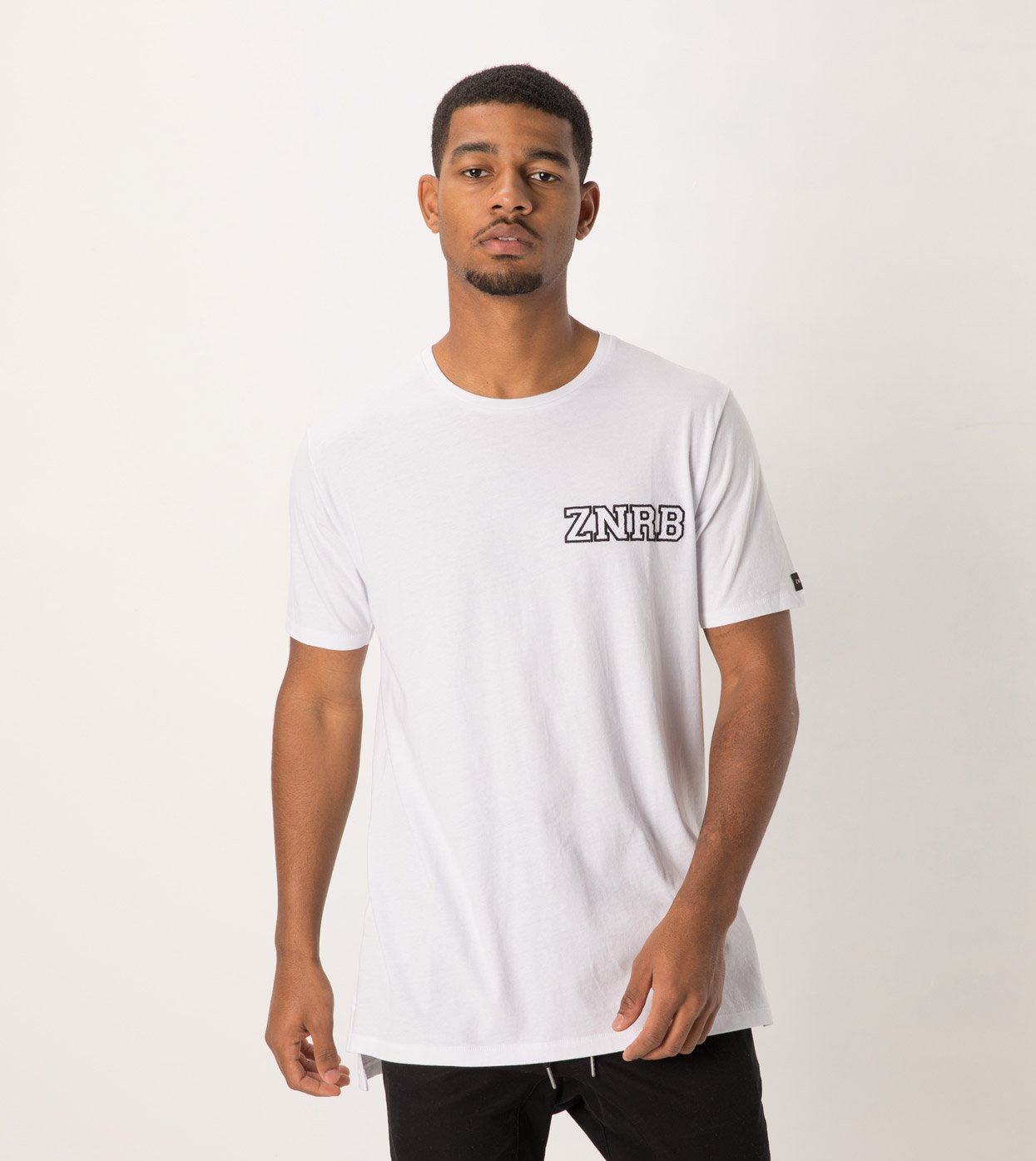 The ZANEROBE Graduate Flintlock Tee in White - constructed in midweight 100% cotton jersey, embroidered logo, slightly elongated back stepped hem and side split details. Wear them with our classic Salerno Chinos. Please note the back length is 81 cm on a size medium and this varies by 1 cm per size.