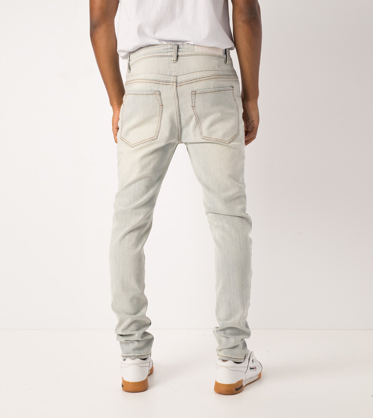 The ZANEROBE Joe Blow Denim in Blonde Wash - ZANEROBE's signature Jean fit, classic 5-pocket construction, tailored straight fit, knee rips, regular rise and button fly. We wear with our classic Flintlock Tee.