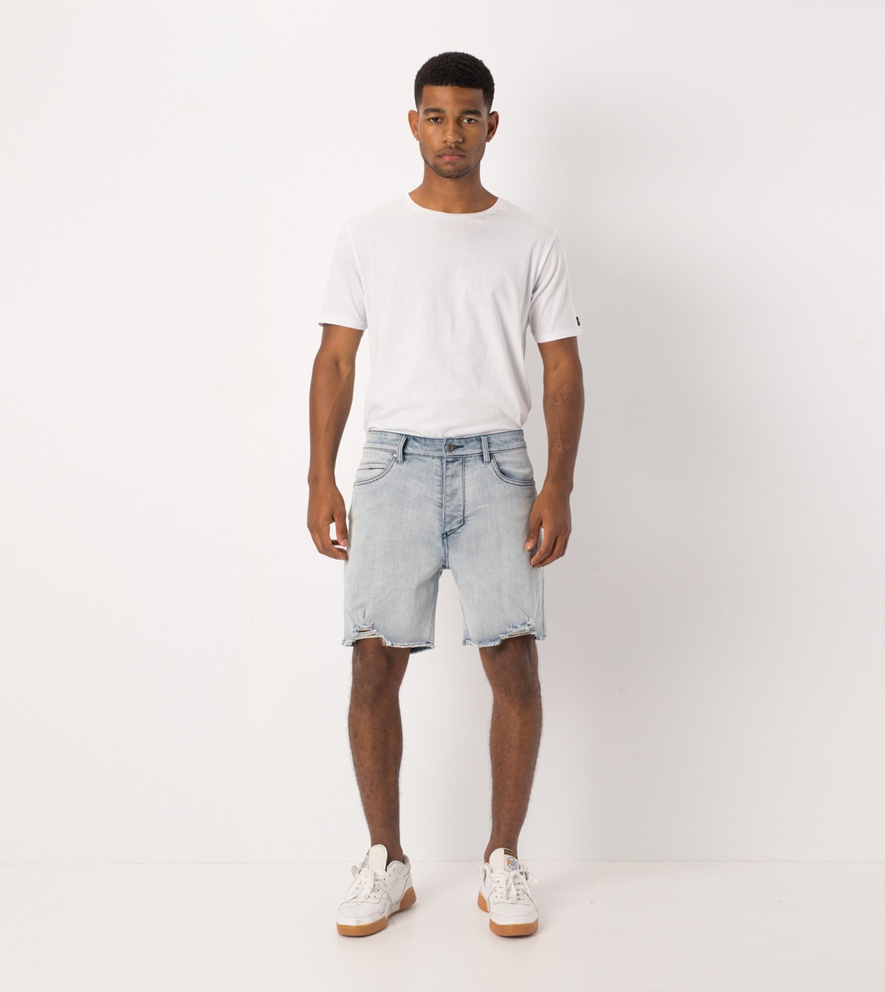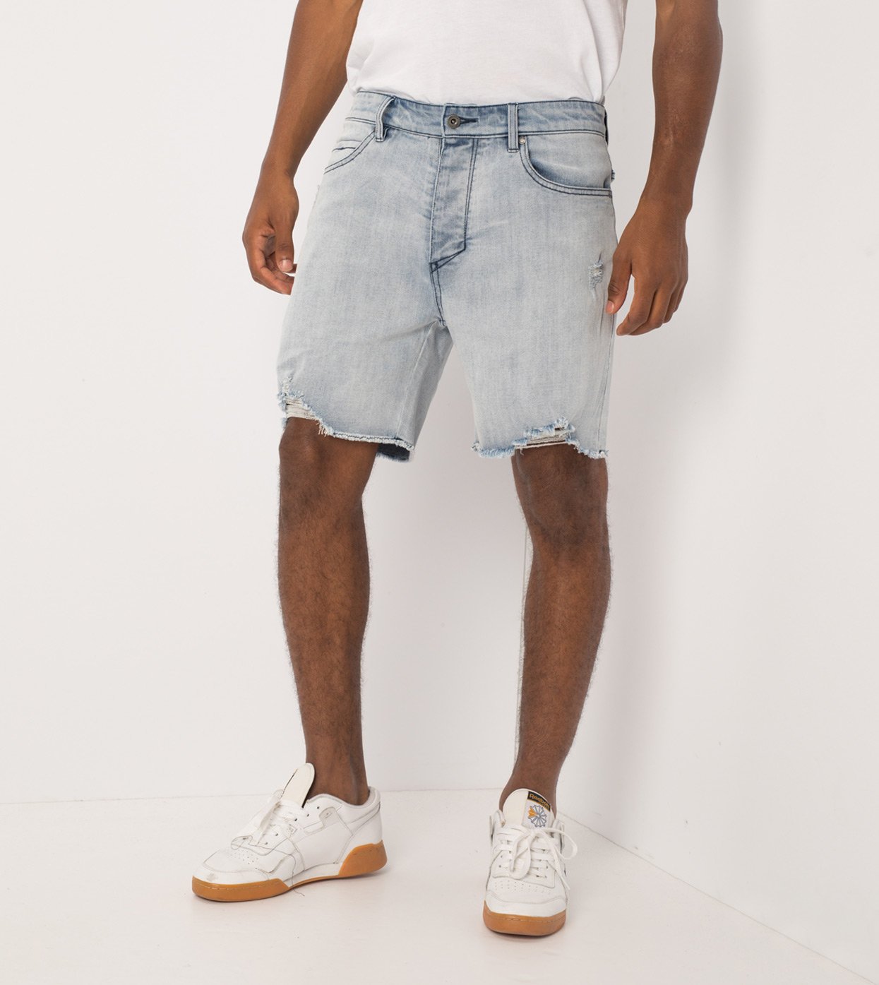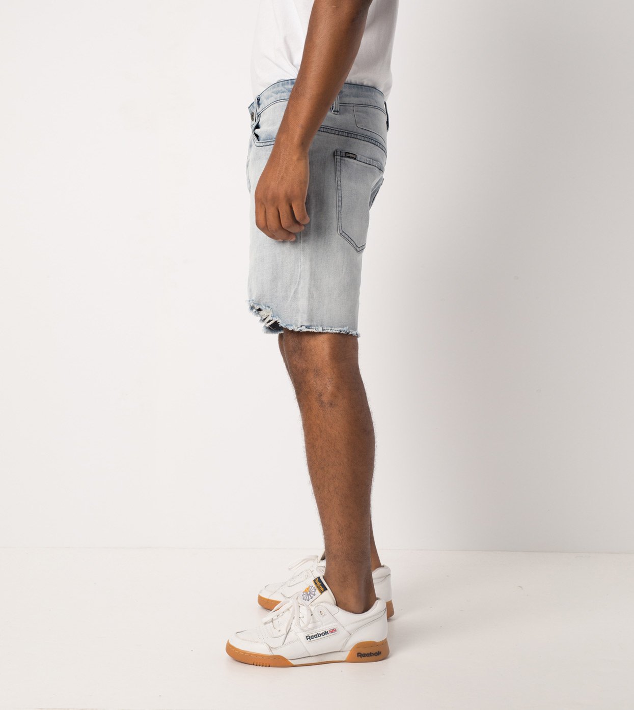 The ZANEROBE Joe Blow Short in Weathered Blonde - ZANEROBE's signature Jean fit, now in shorts option, classic 5-pocket construction, tailored straight fit, raw distressed hems, regular rise and button fly. We wear with our classic Flintlock Tee.