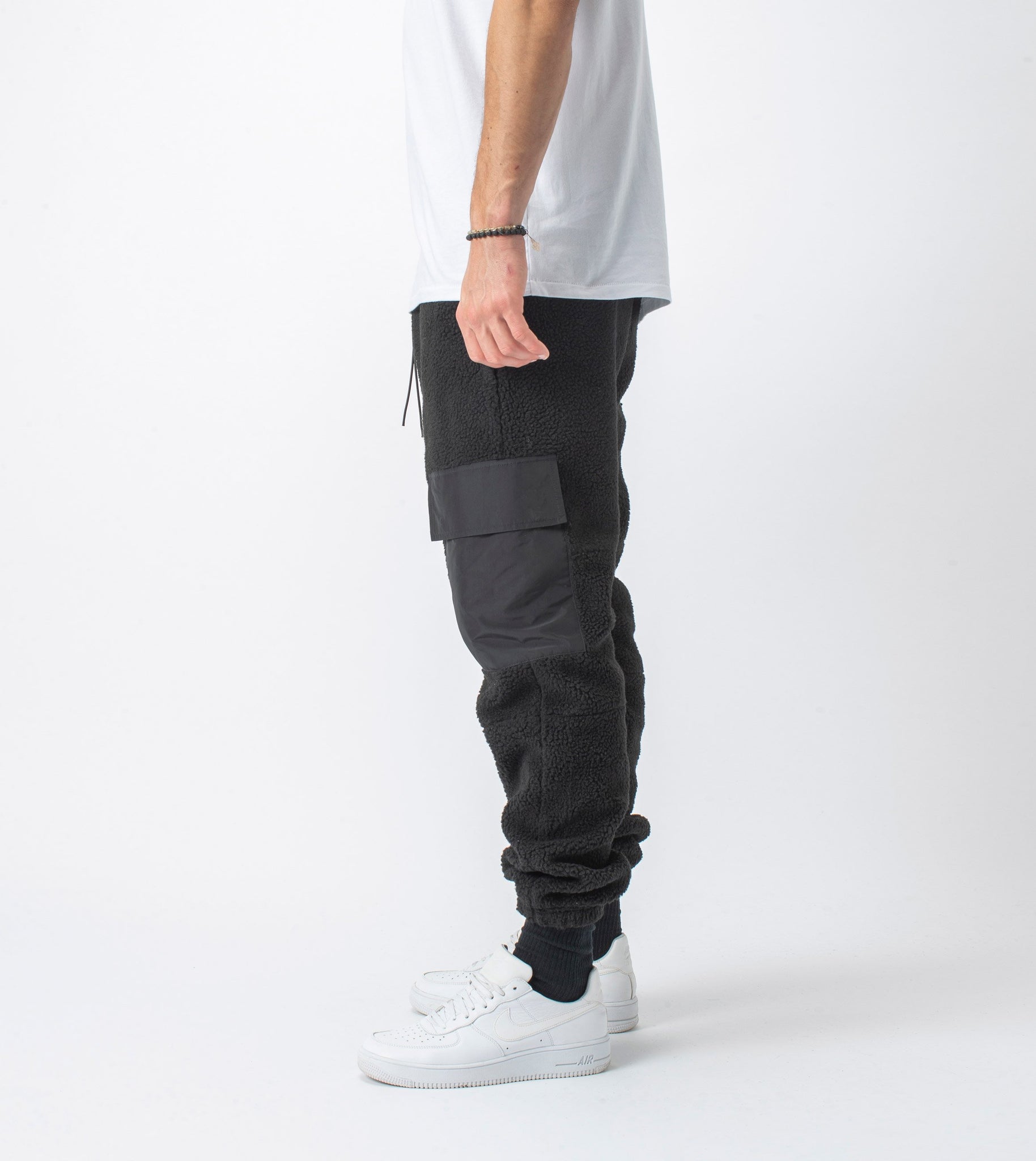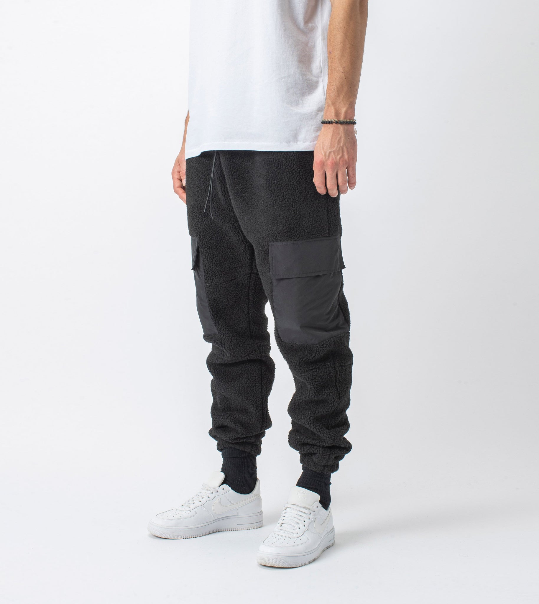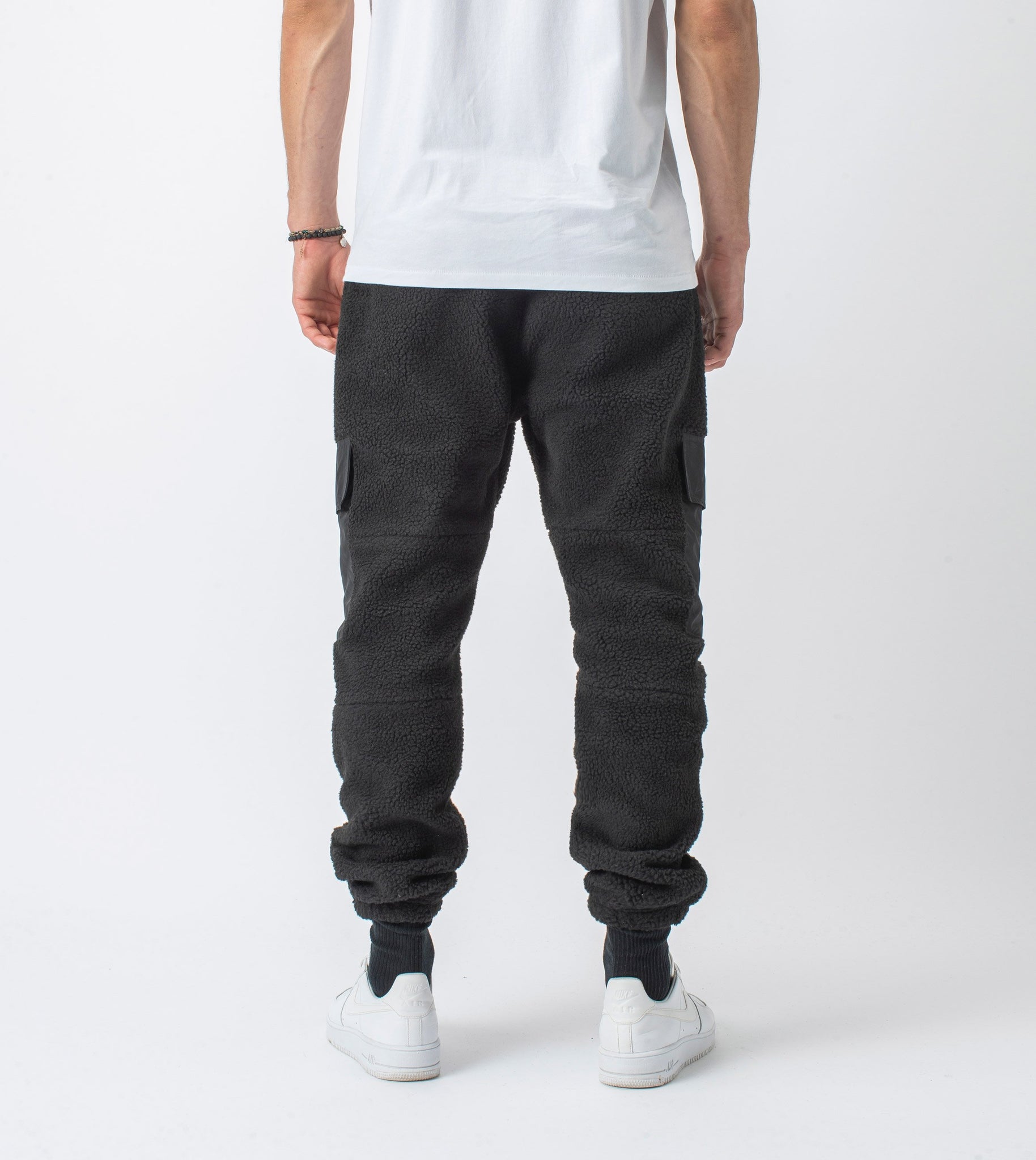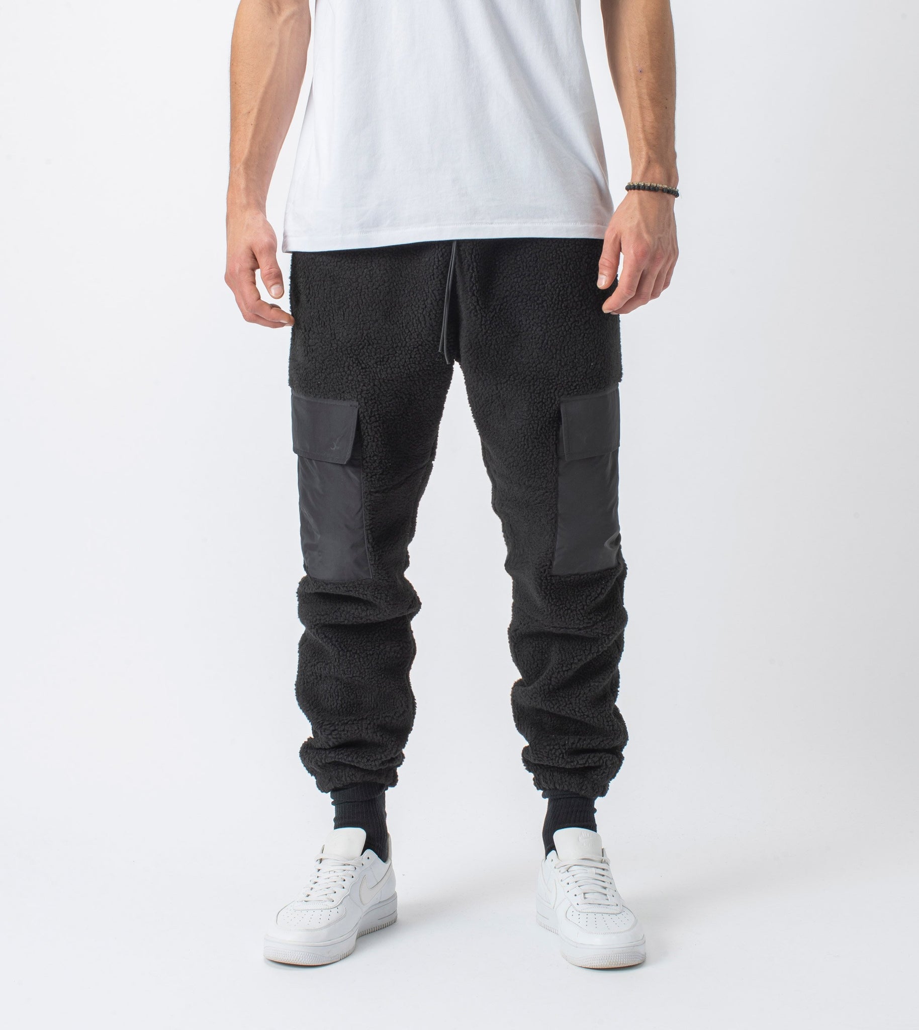 The ZANEROBE Jumpa Cargo Shearling Jogger in Black - shearling version of our Jumpa Fleece Jogger. Complete the look and wear with our range of classic fit Box Tee.