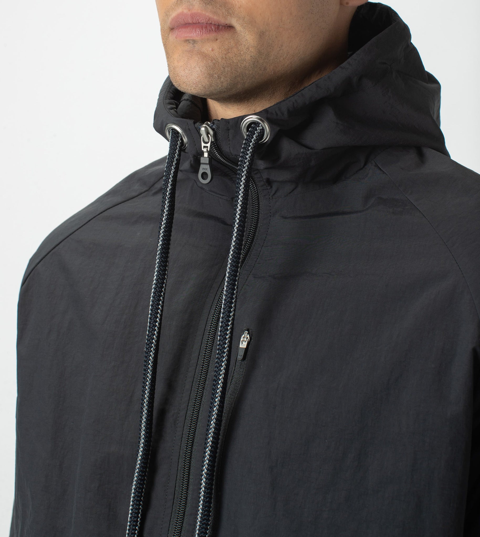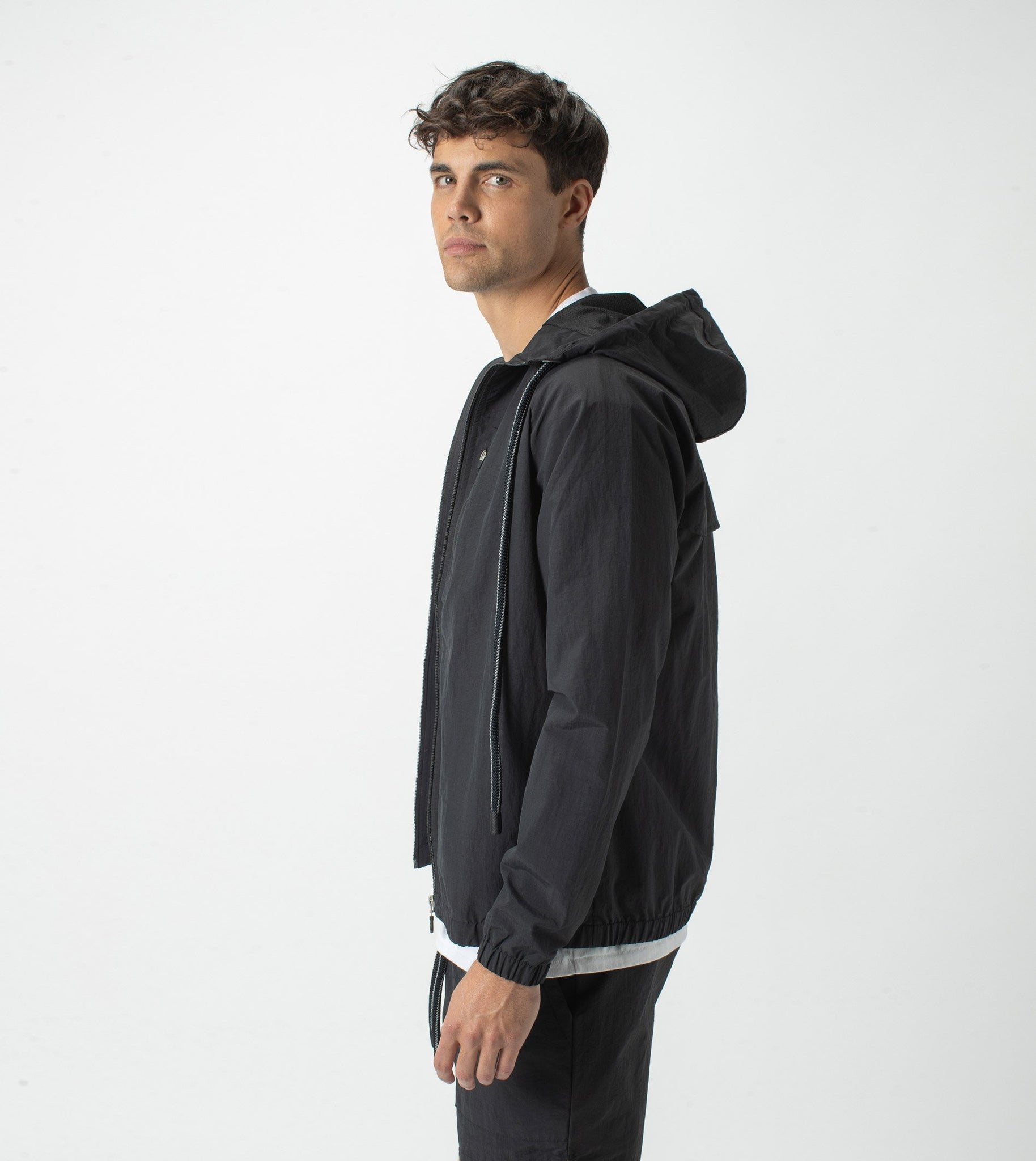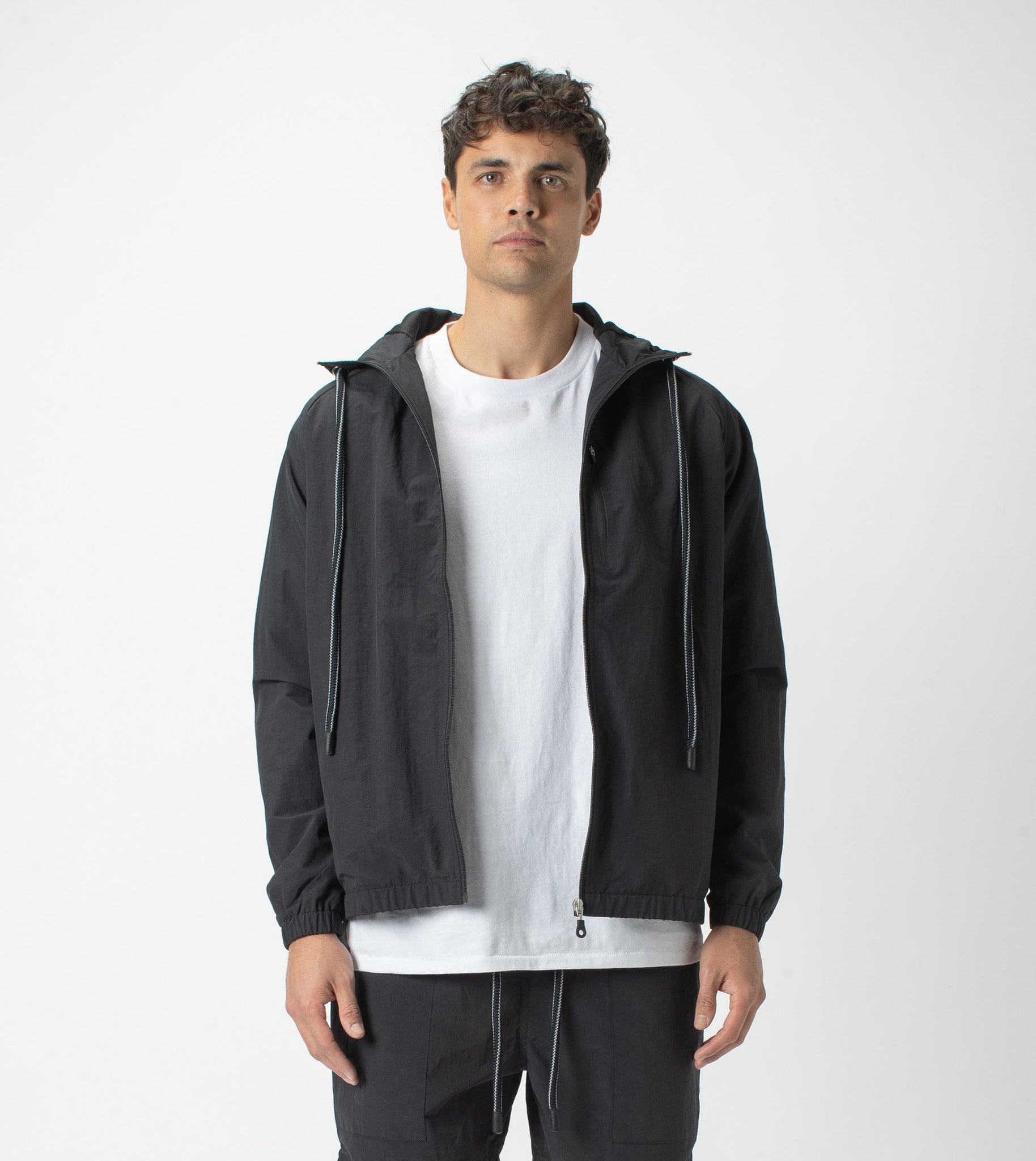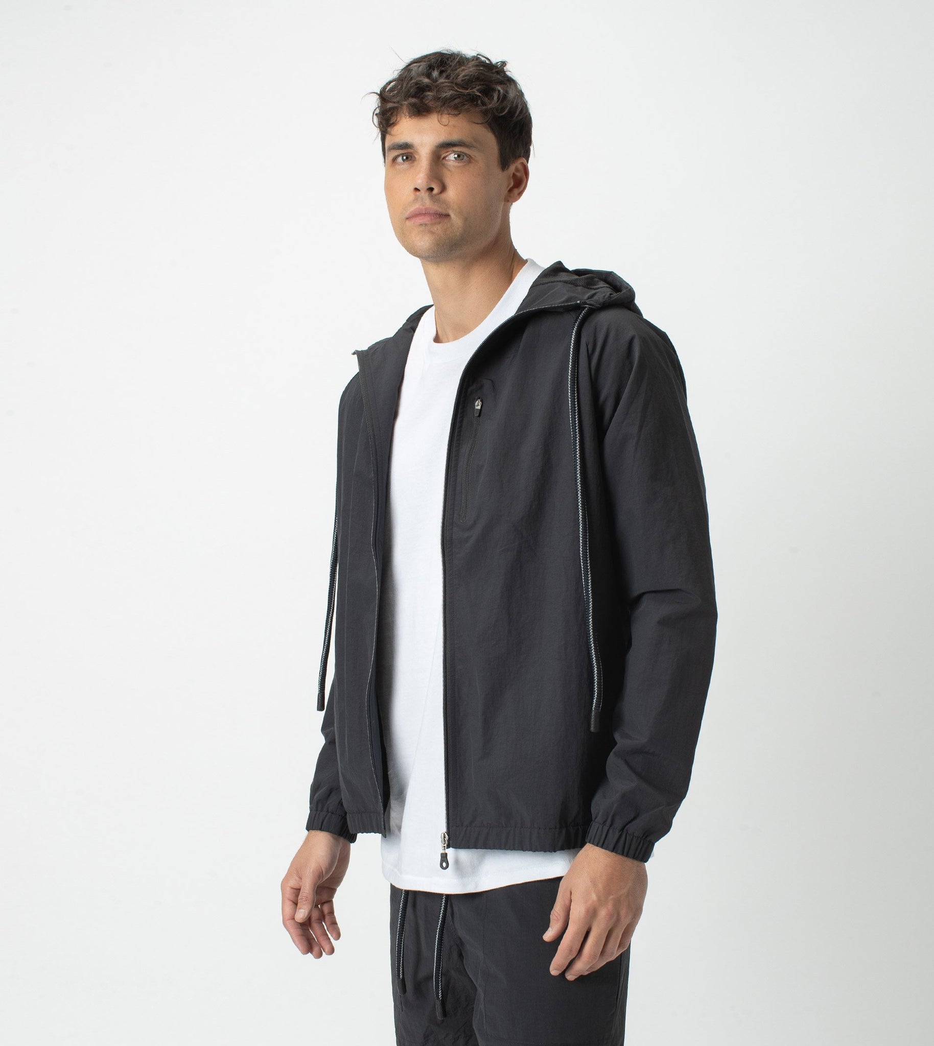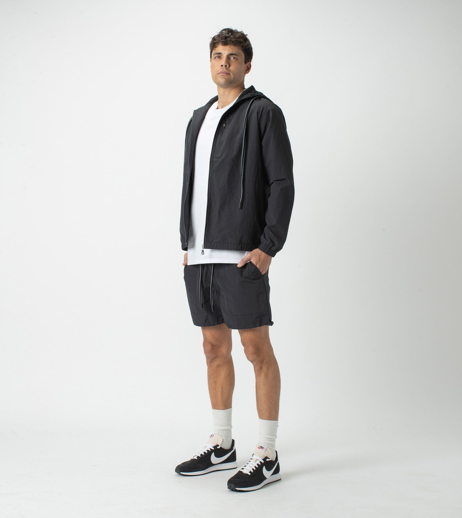 The ZANEROBE Jumpa Lite Jacket in Black - Track sport inspired design detailing. We wear with the matching Jumpa Lite Shorts.