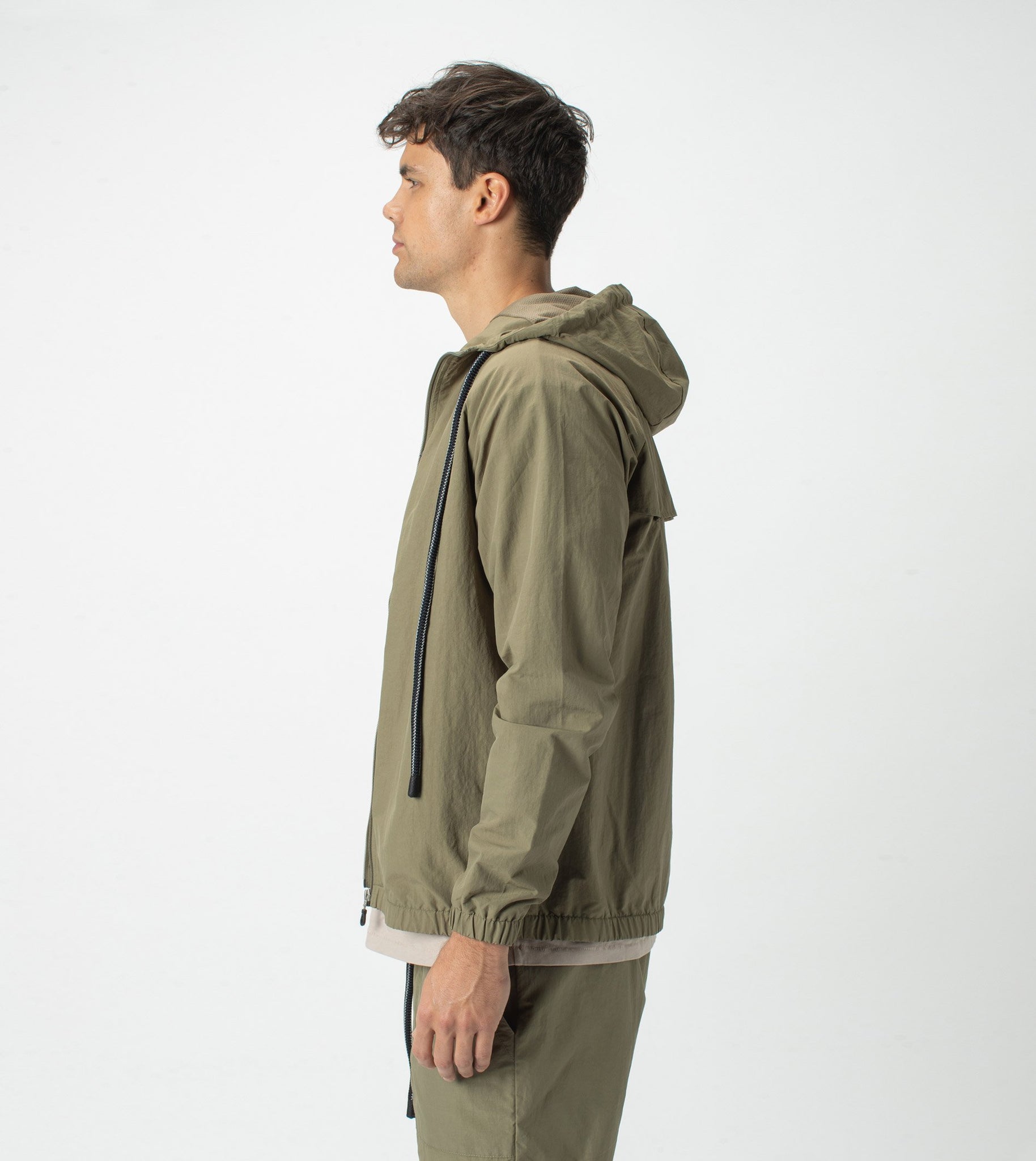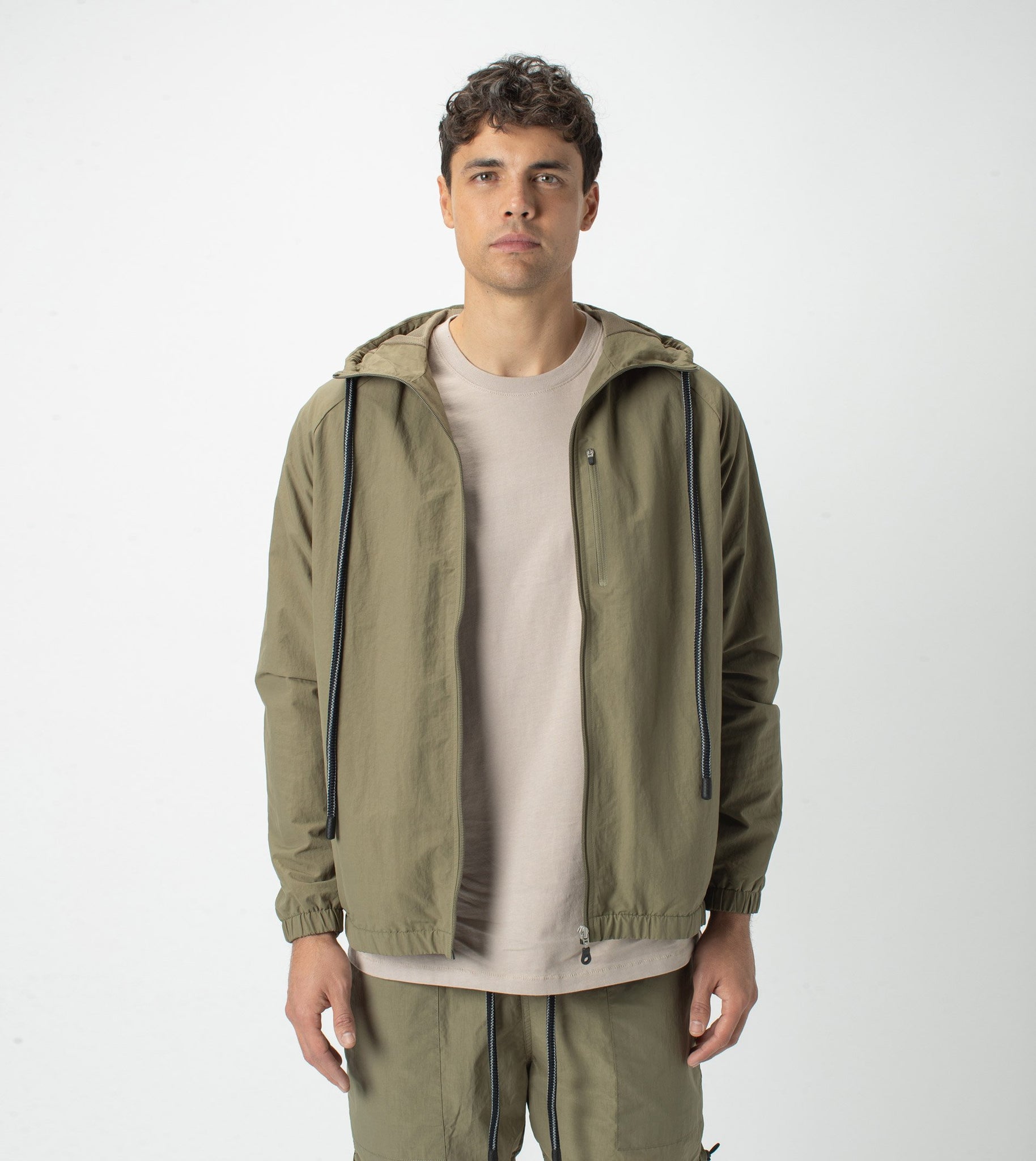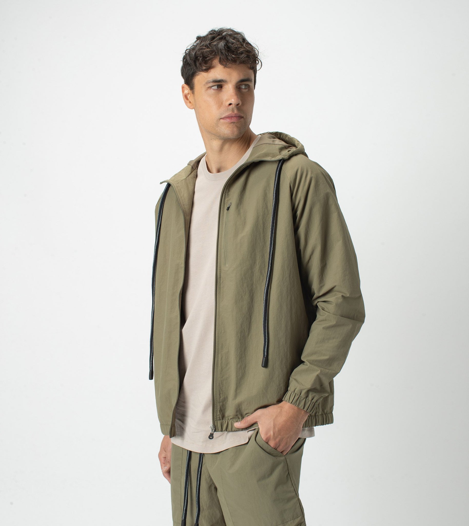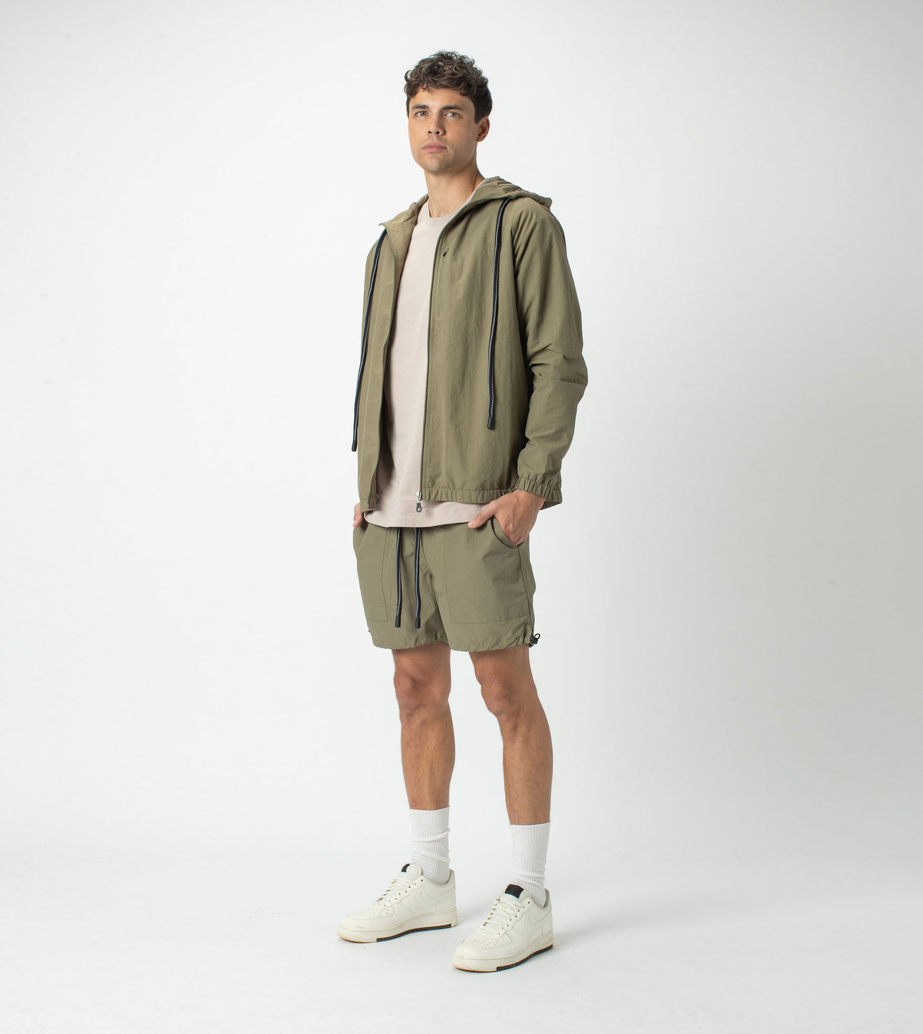 The ZANEROBE Jumpa Lite Jacket in Moss - Track sport inspired design detailing. We wear with the matching Jumpa Lite Shorts.