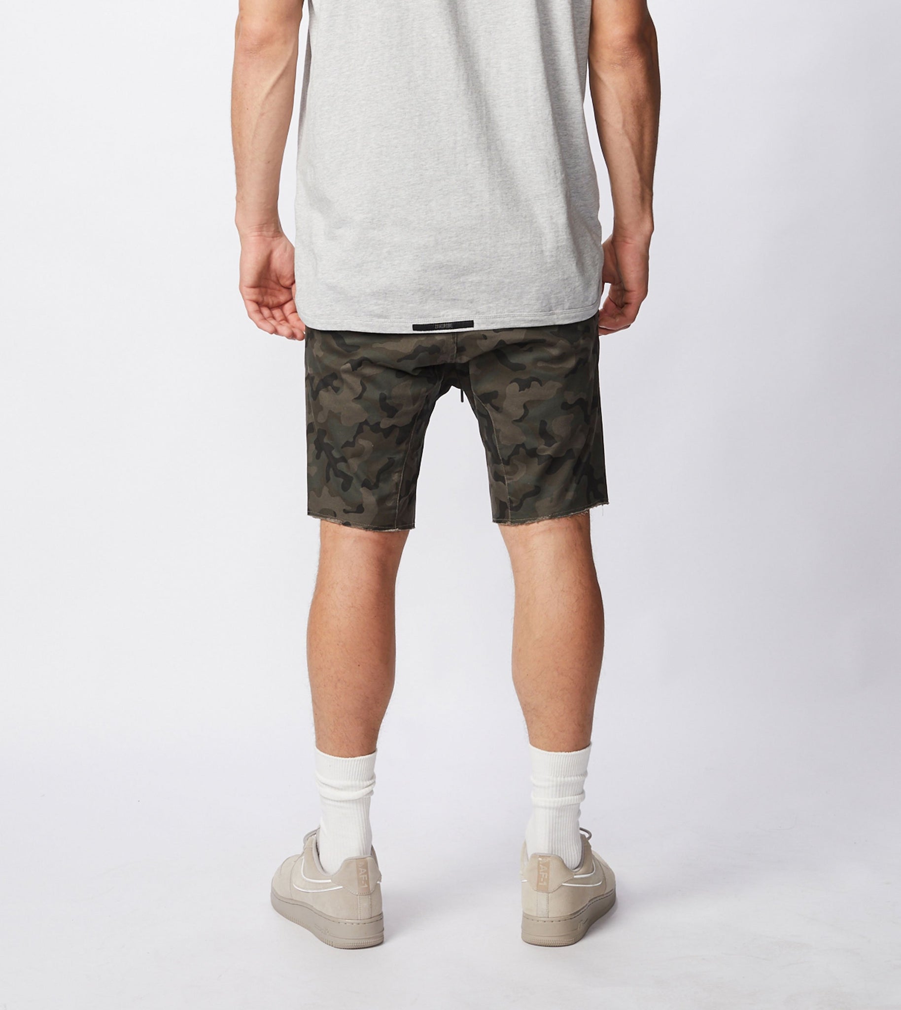 The ZANEROBE Sureshot Short in Dk Camo - a relaxed stretch cotton twill chino short, comfortable and super easy to wear. We wear with our basic Flintlock Tee.