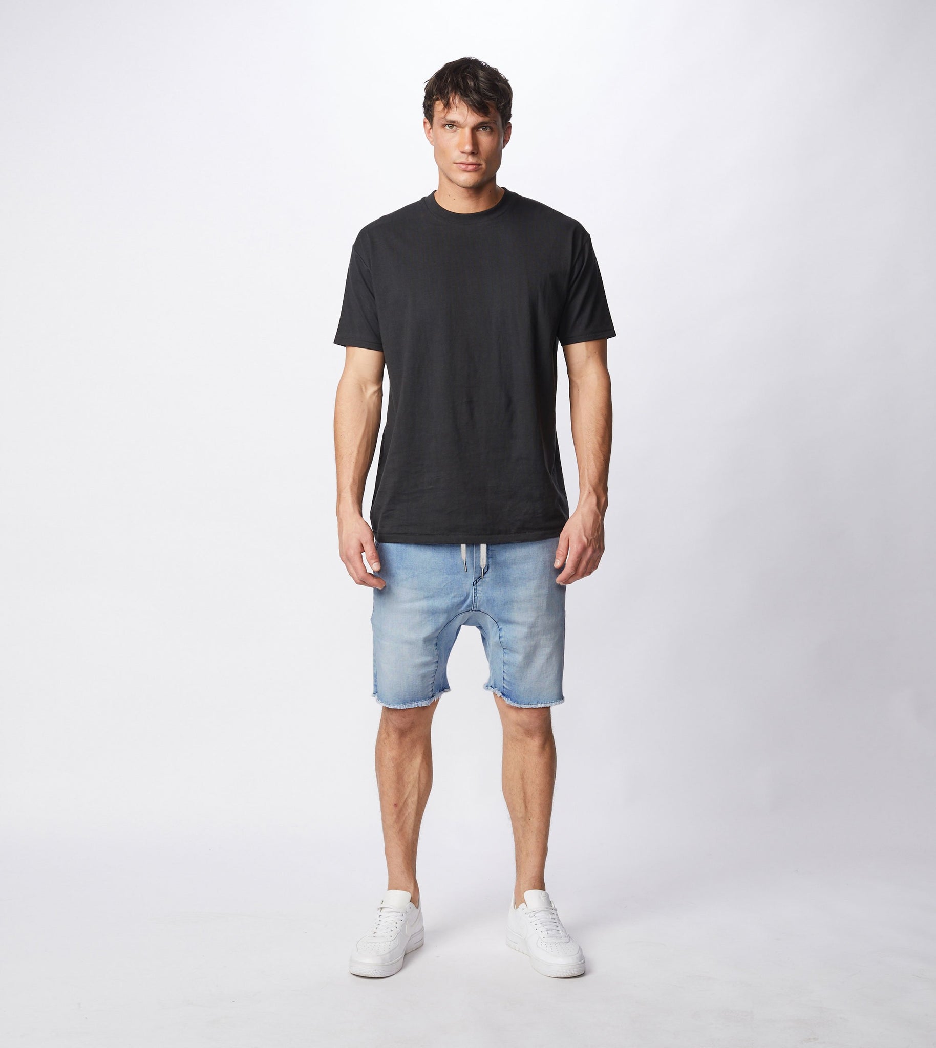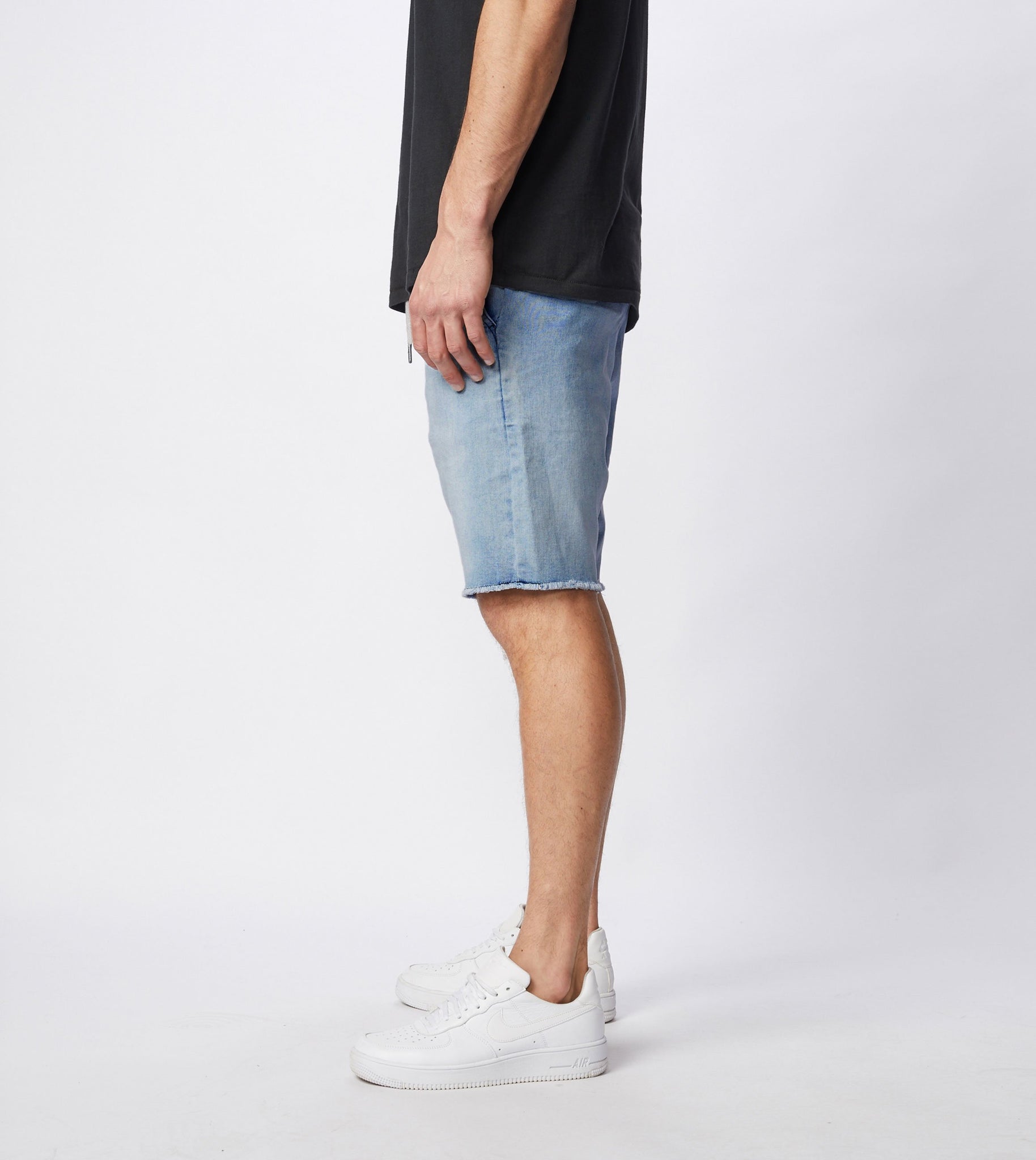 The ZANEROBE Sureshot Short in Mid Blue Tac - a relaxed stretch cotton twill chino short, comfortable and super easy to wear. We wear with our basic Flintlock Tee.