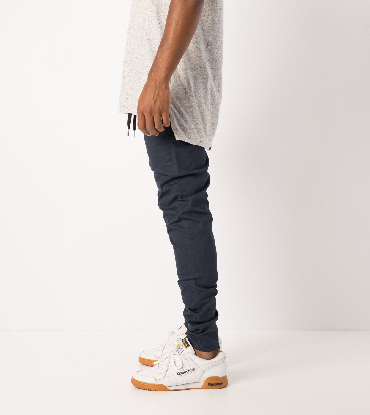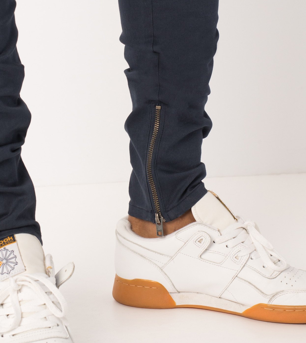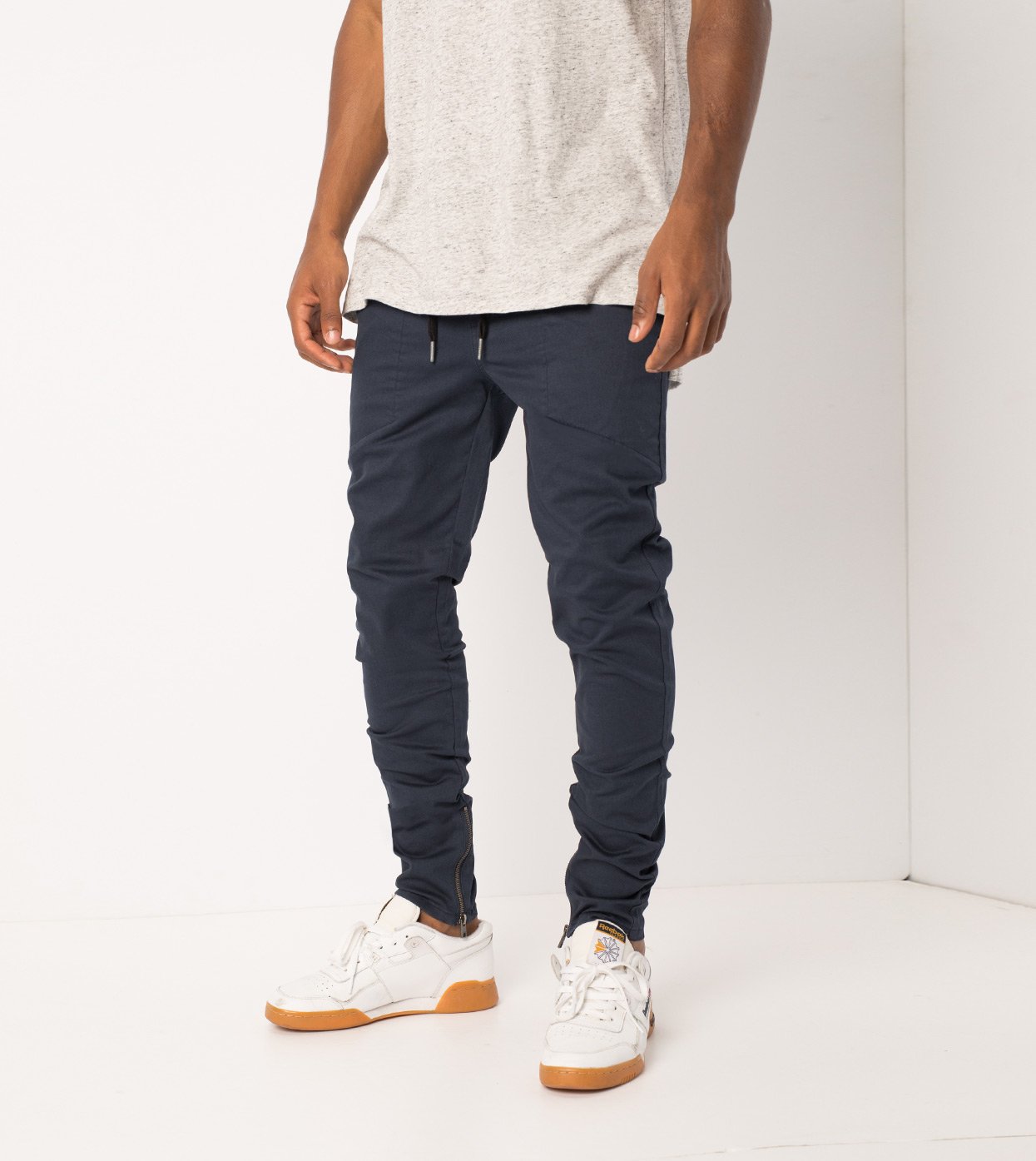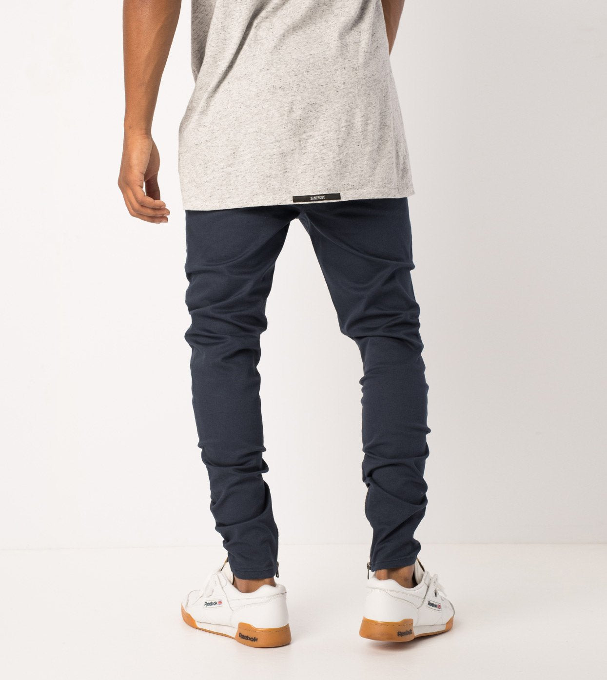 ZANEROBE Unblockshot Chino in Duke Blue - tapered chino pant, slim fit, tapered cuffs with zip openings, elastic waistband, comfort stretch fabric, feature stitch line pocket and standard rise. Layer on a ZANEROBE tee and shirt.